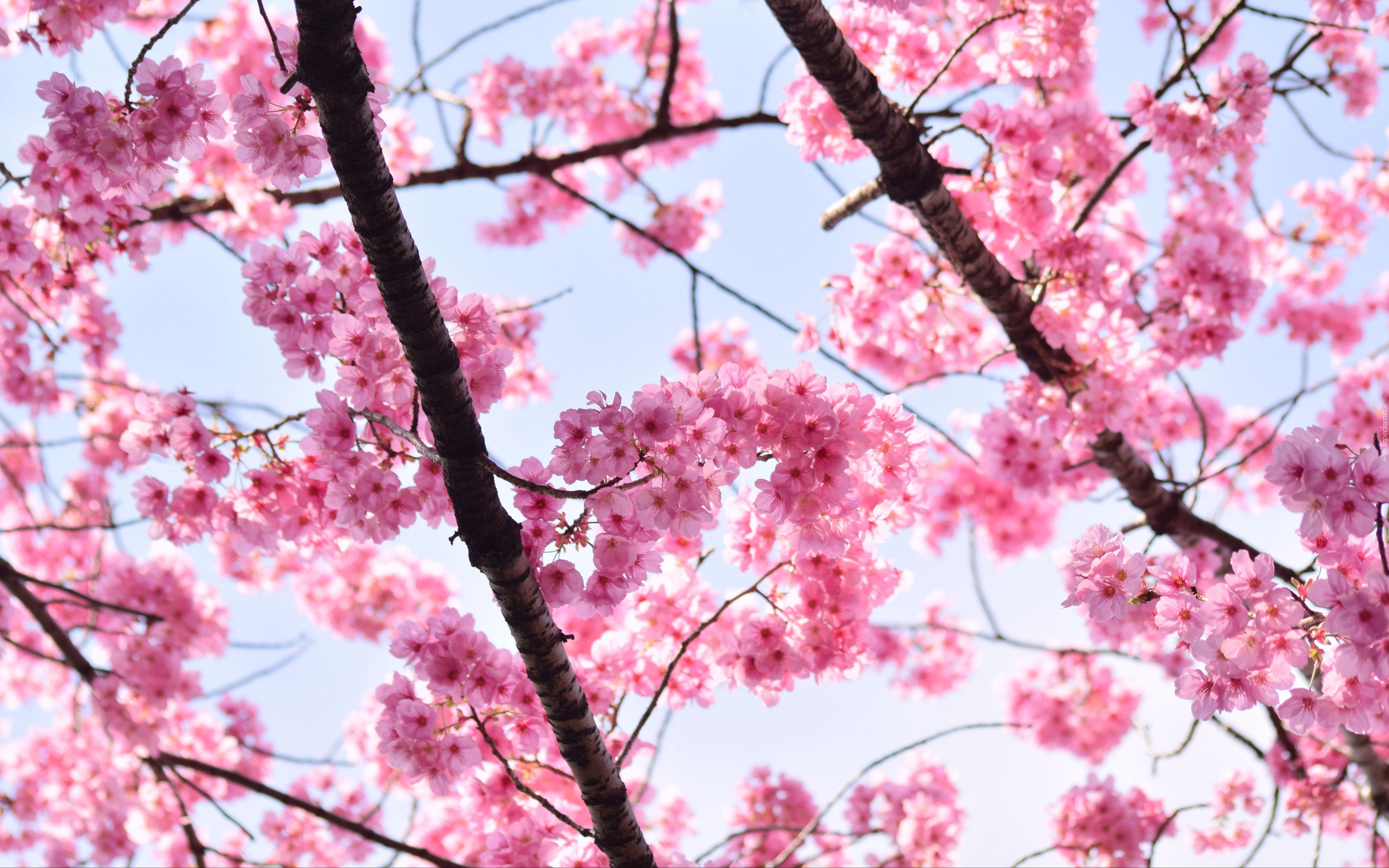 Edytor tapety: Gałązki z różowymi kwiatami na tle nieba
