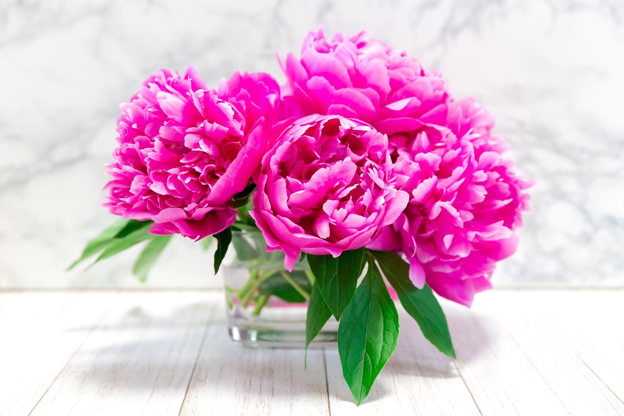 Edytor tapety: Różowe piwonie w szklanym wazonie