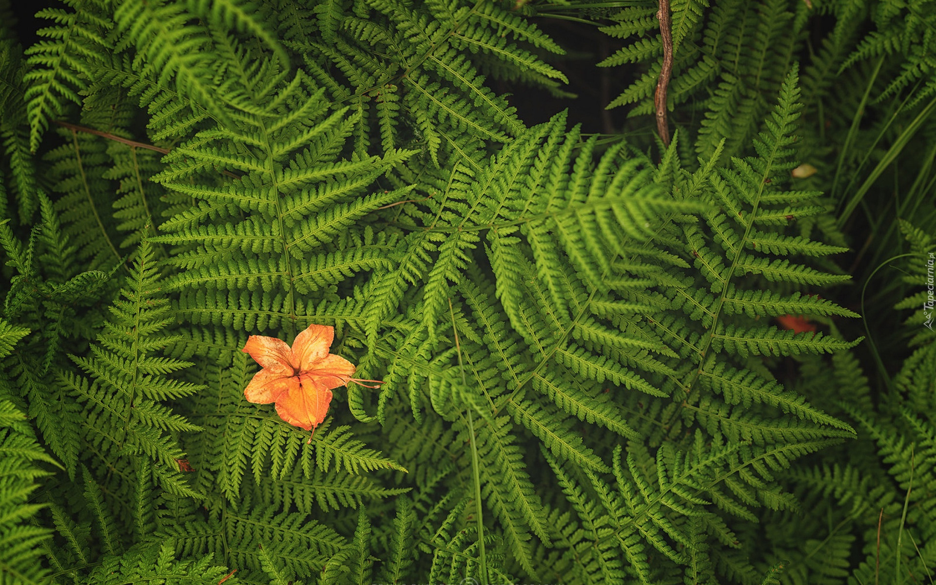 Edytor tapety: Pomarańczowy kwiat w paprociach