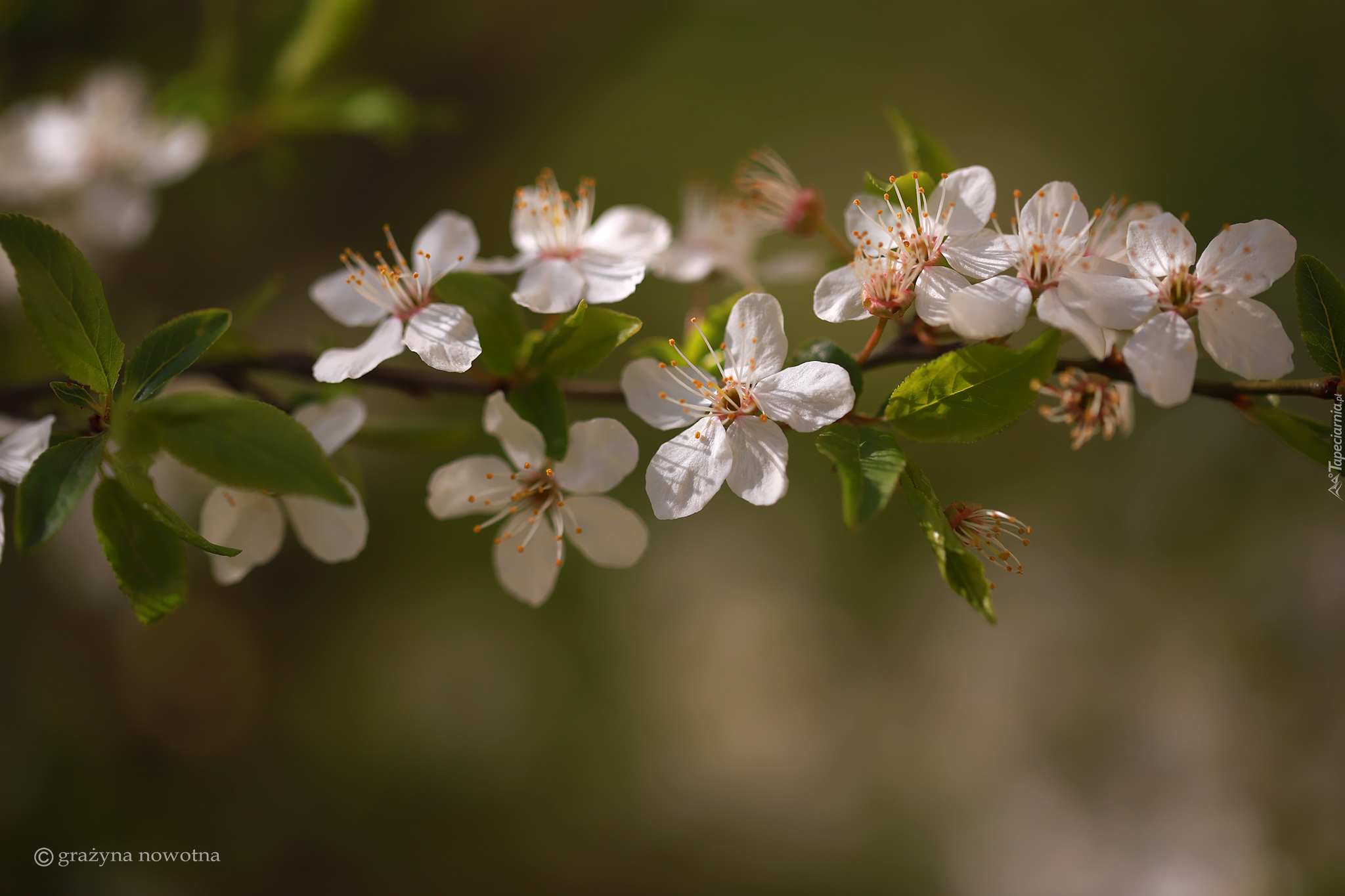 Edytor tapety: Gałązka z białymi kwiatami i liśćmi