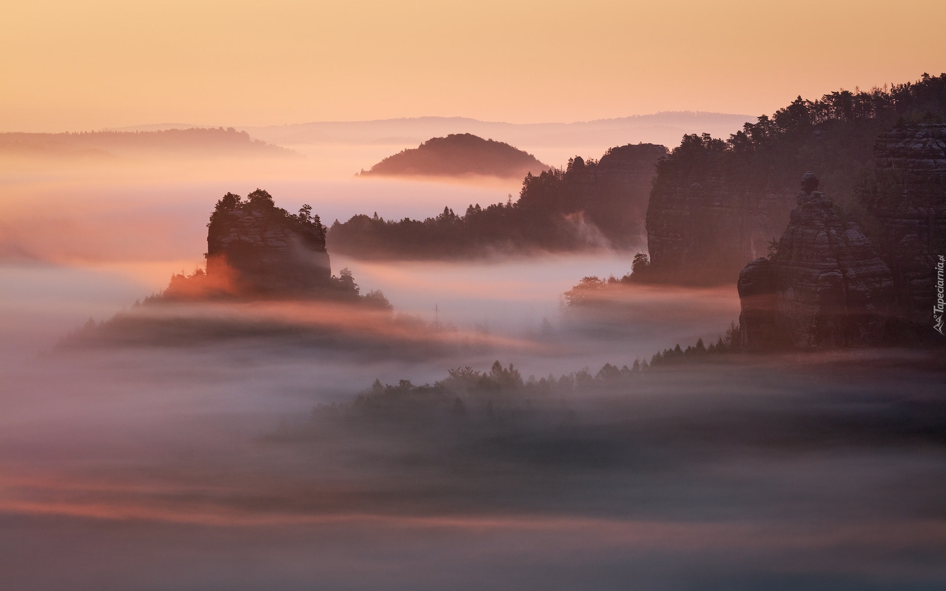 Edytor tapety: Zamglone Góry Połabskie o poranku