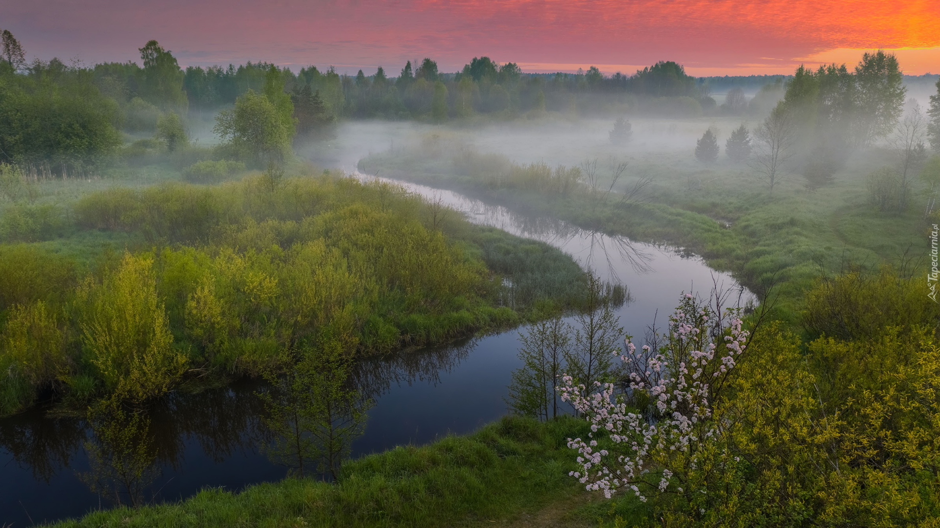 Edytor tapety: Mgła nad łąkami i rzeką Uzolą