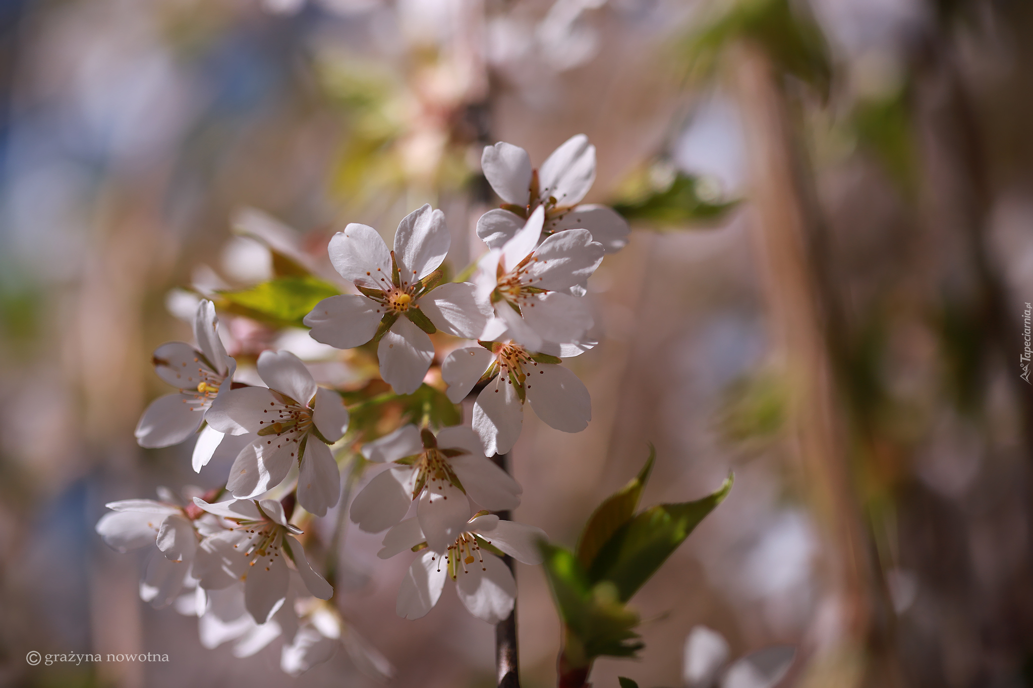 Edytor tapety: Białe kwiaty wiśni na rozmytym tle