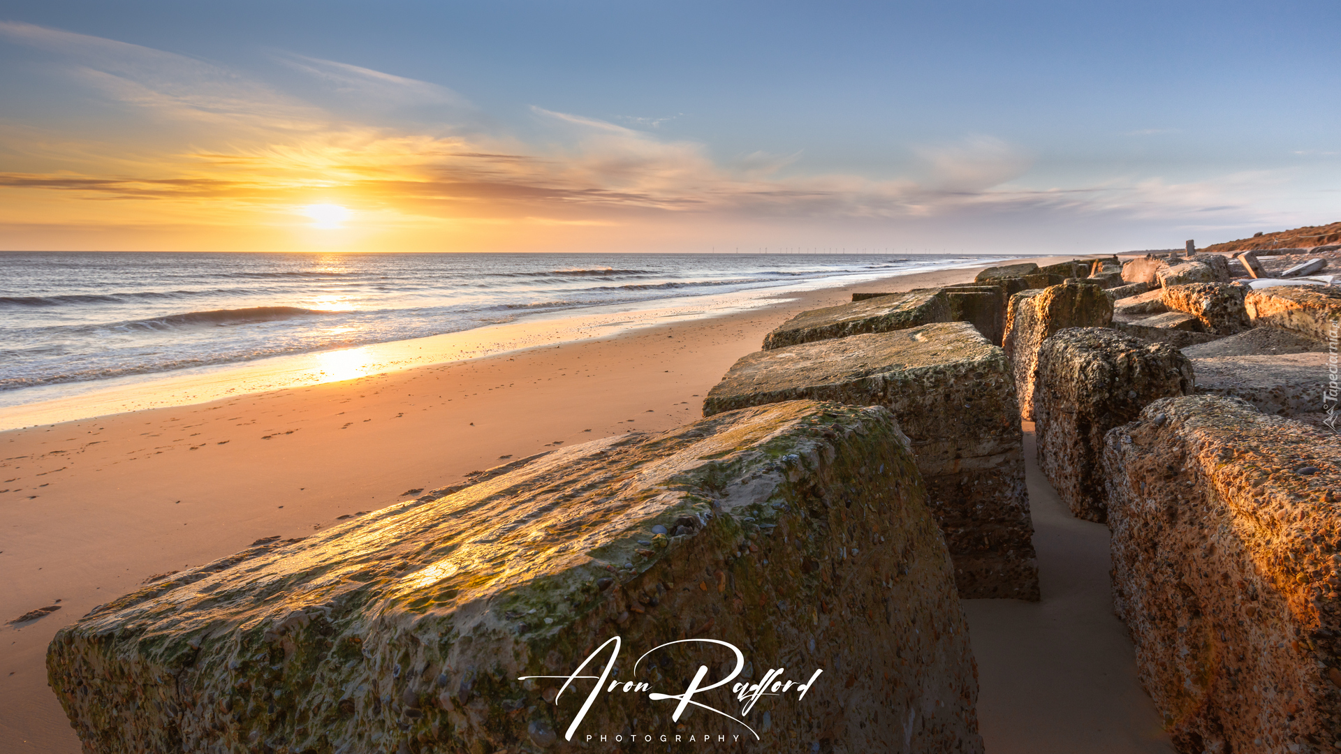 Edytor tapety: Kamienie na morskim brzegu w blasku słońca