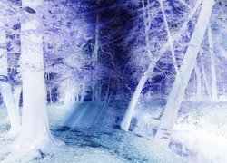 Edytor tapety: Promienie słońca wśród drzew nad leśną rzeką