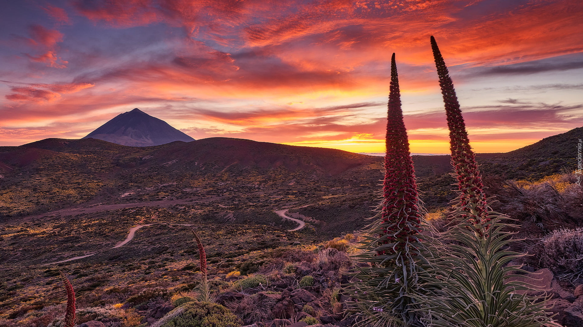 Edytor tapety: Żmijowce rubinowe na tle Parku Narodowego Teide