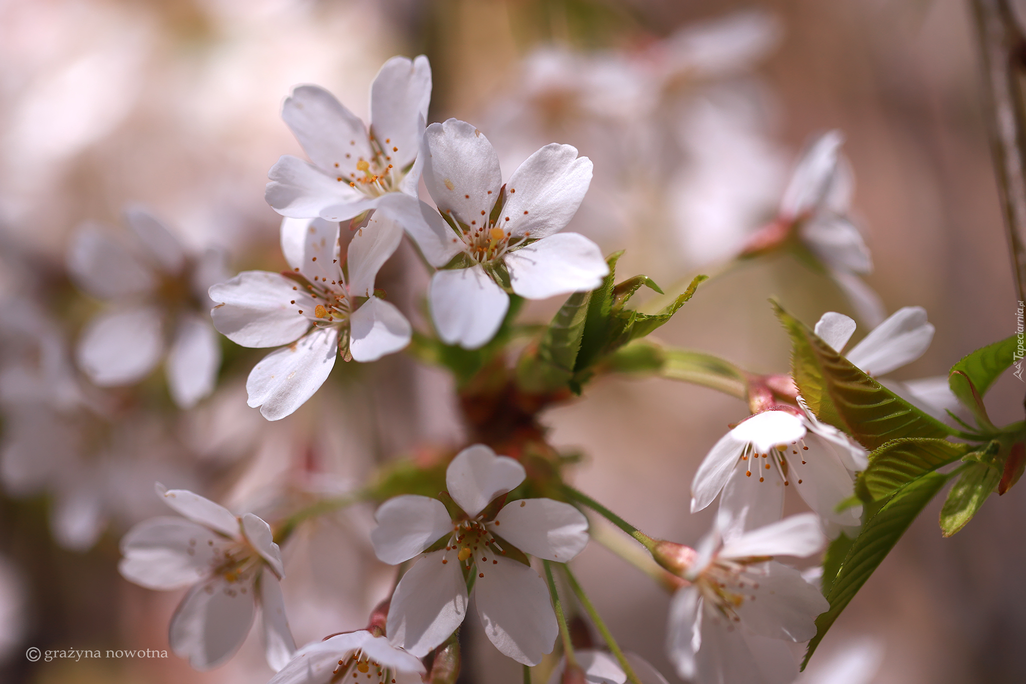 Edytor tapety: Kwiaty wiśni z liśćmi