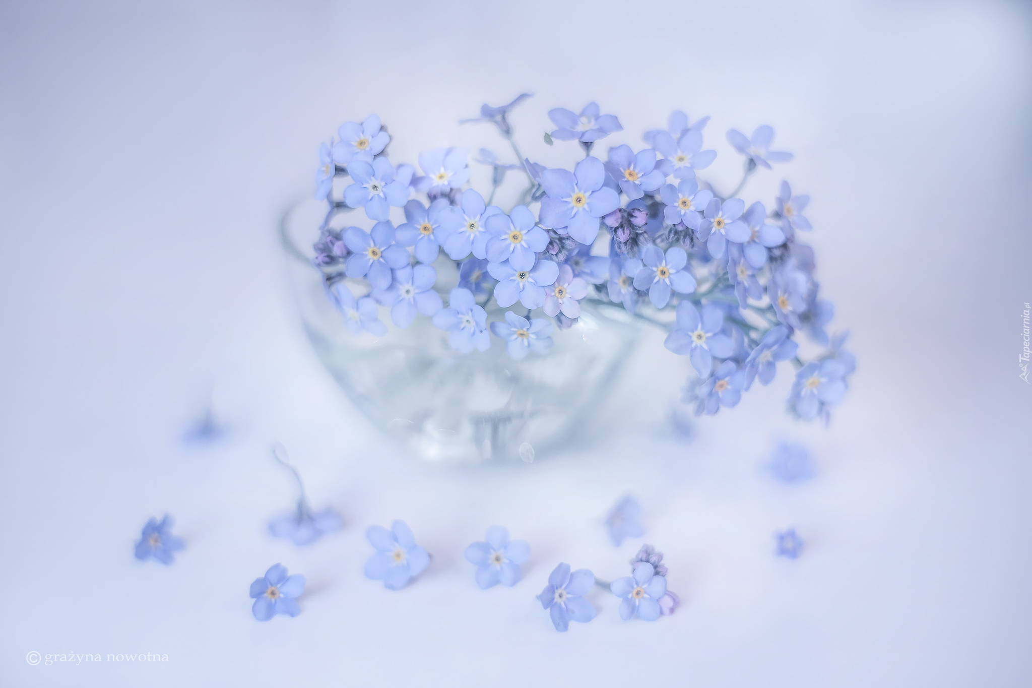 Edytor tapety: Niezapominajki w szklanym naczyniu