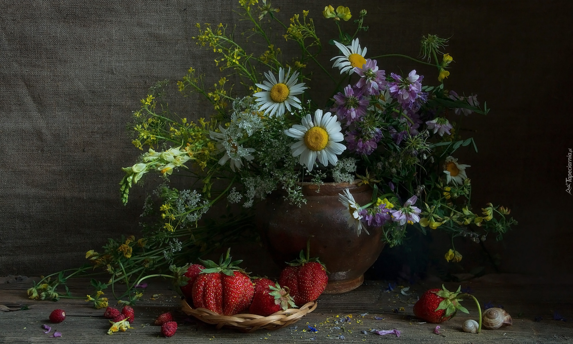 Edytor tapety: Kompozycja kwiatowa z truskawkami