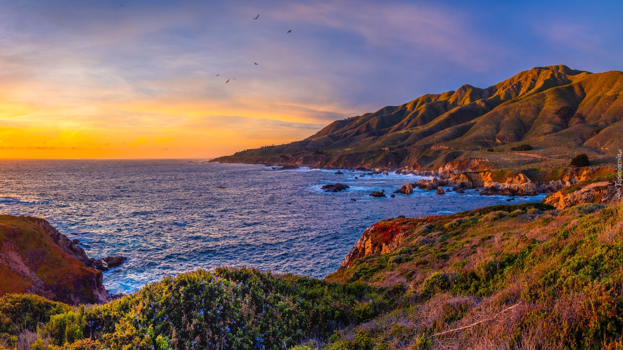 Edytor tapety: Zachód słońca na wybrzeżu Big Sur w Kalifornii
