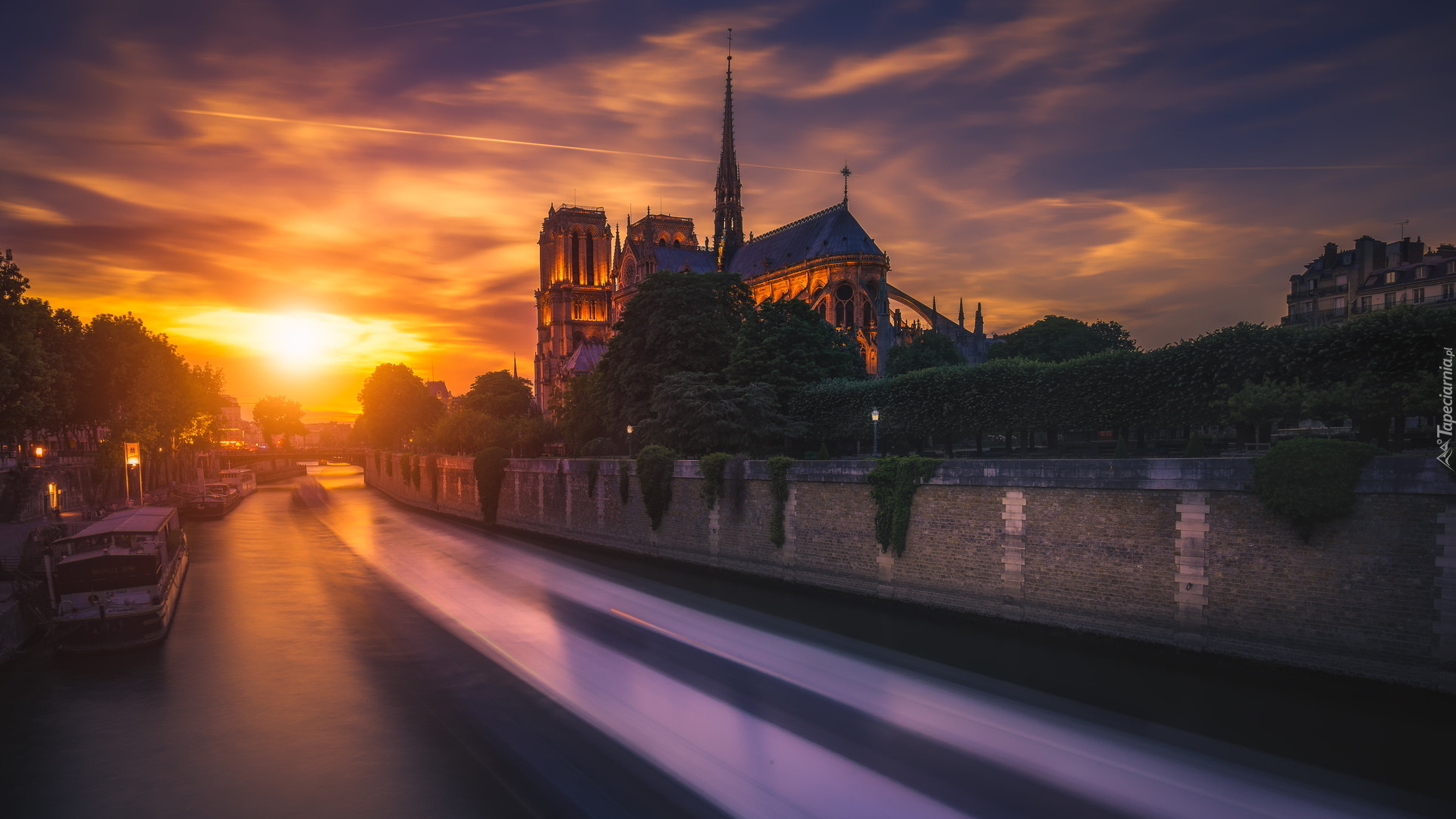 Edytor tapety: Zachód słońca nad Katedrą Notre Dame