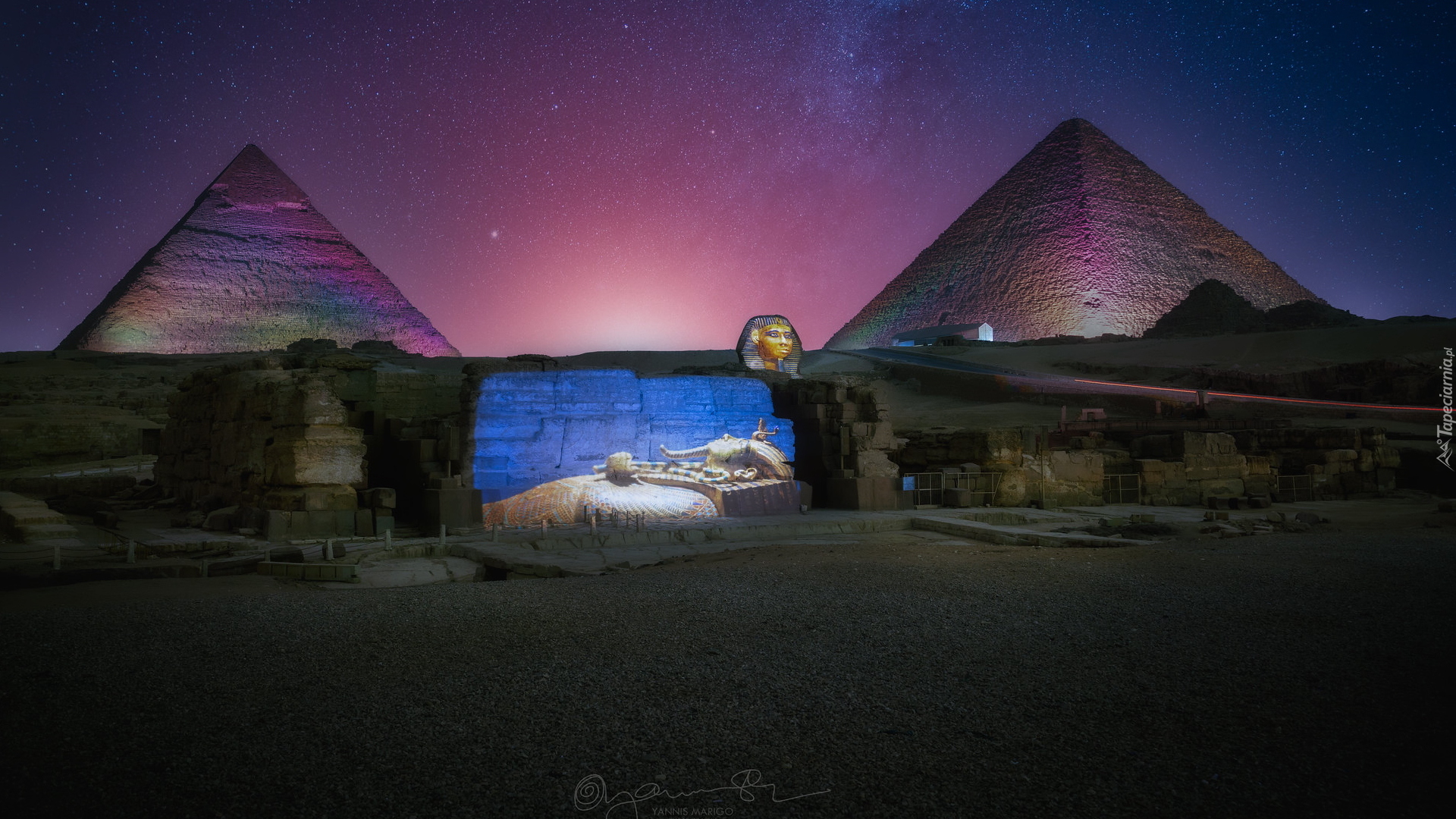 Edytor tapety: Piramidy w Gizie pod gwiaździstym niebem