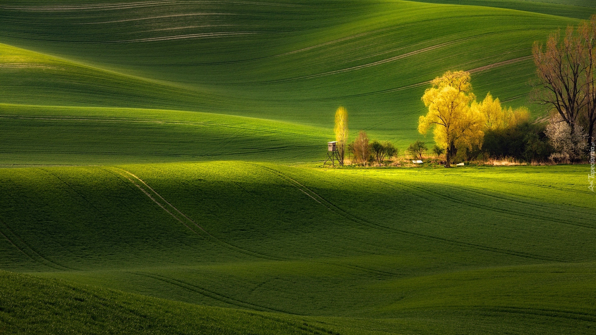 Edytor tapety: Drzewa na zielonych polach Południowych Moraw