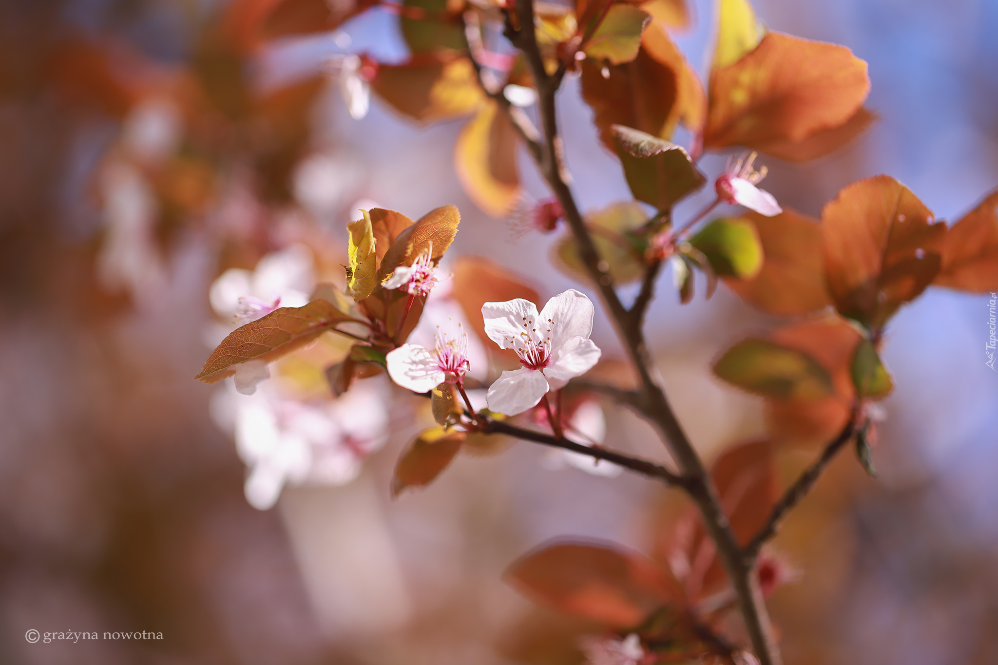 Edytor tapety: Okwiecona jasnoróżowymi kwiatami gałązka