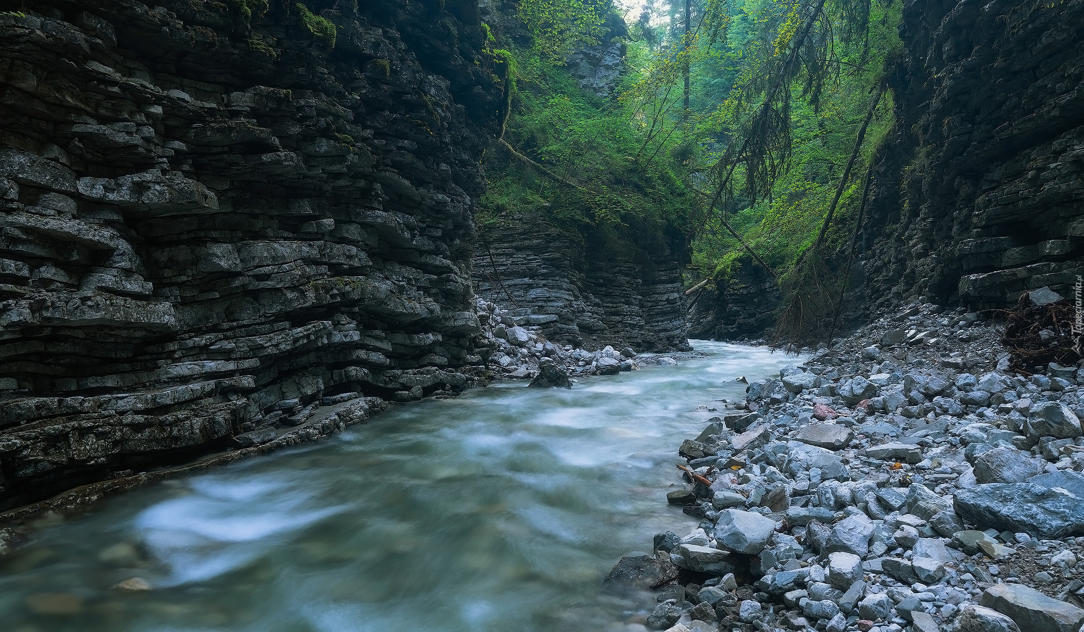 Edytor tapety: Rzeka pomiędzy skałami w wąwozie