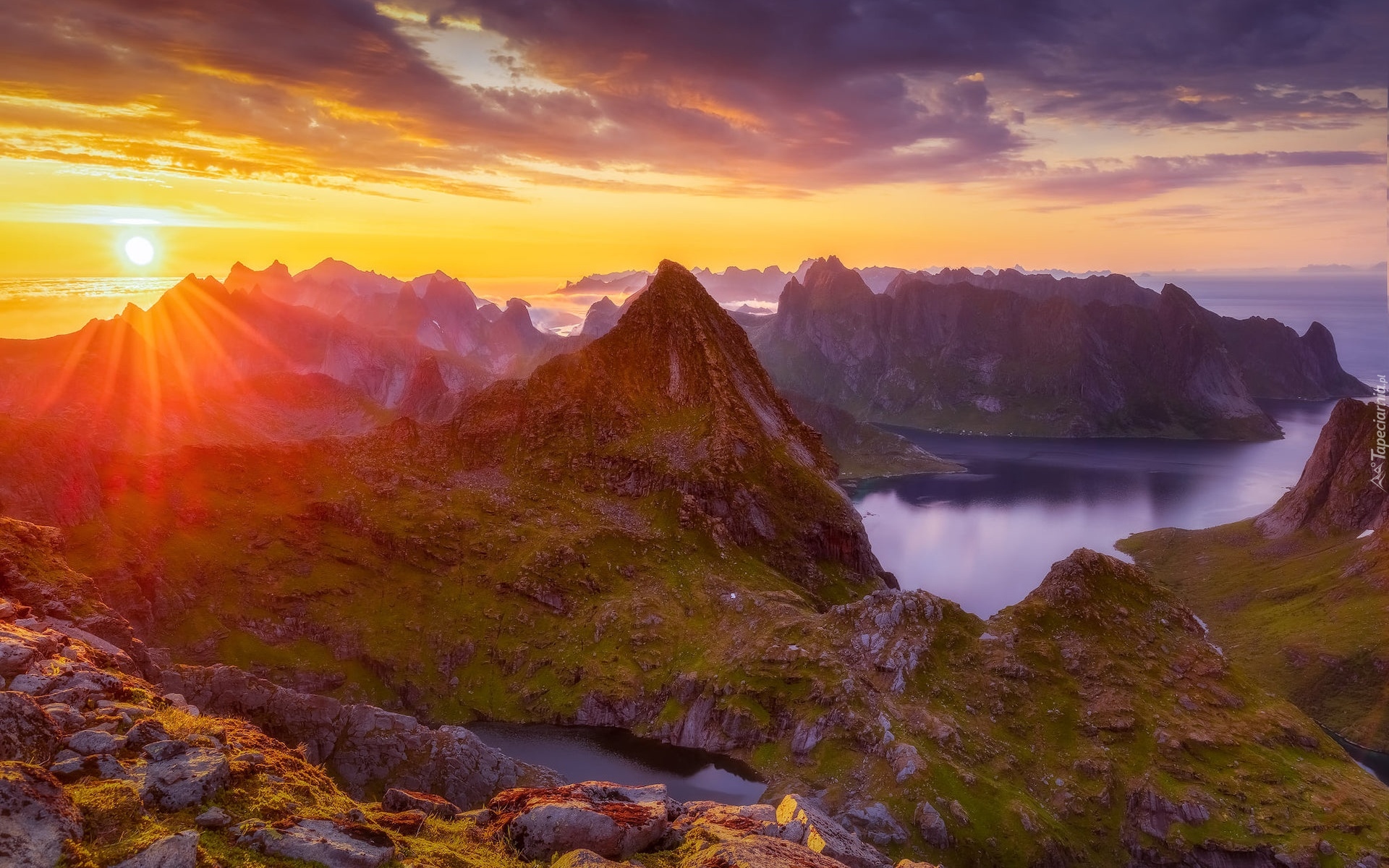 Edytor tapety: Góry na Lofotach w promieniach słońca