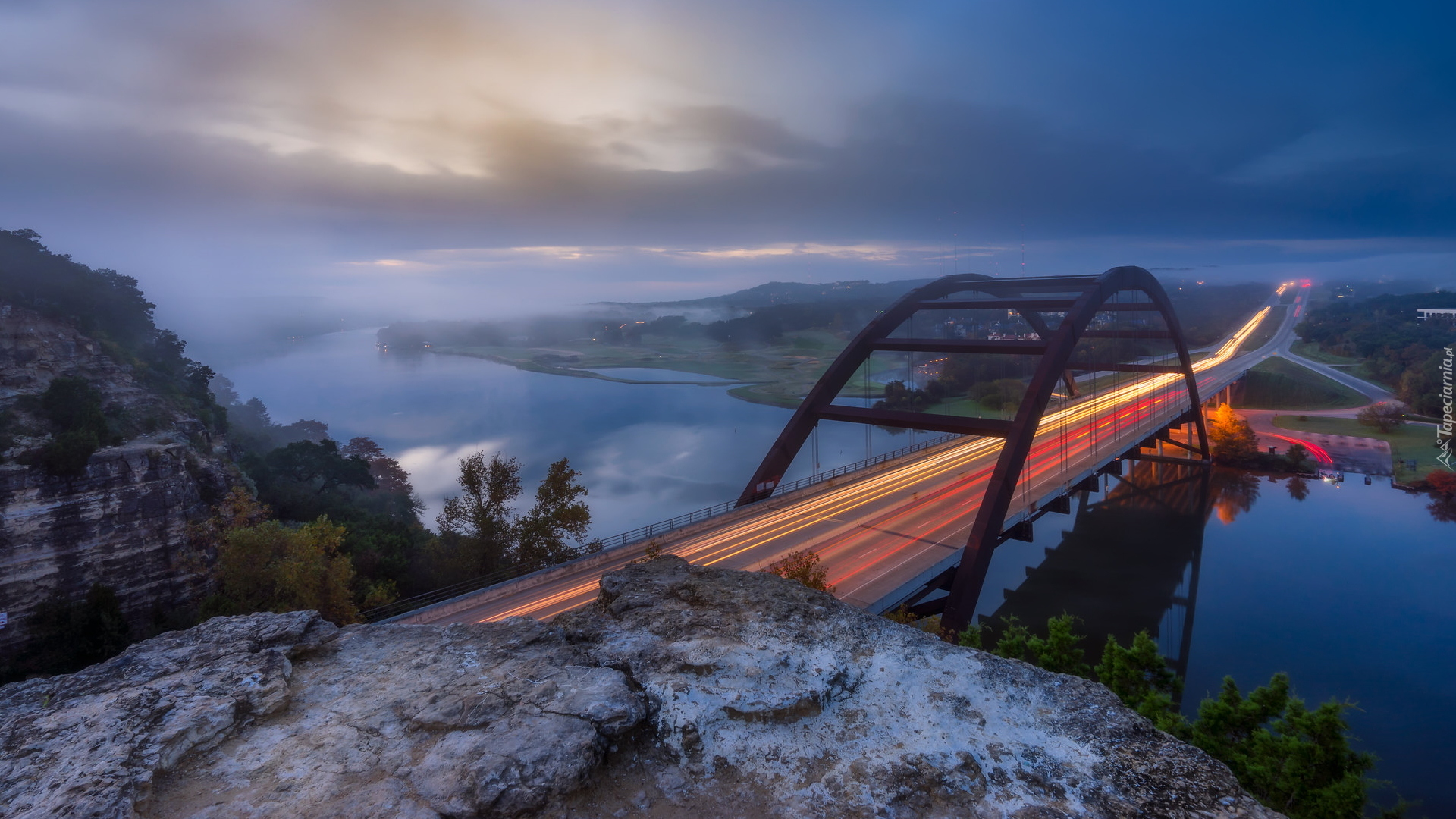 Edytor tapety: Most Pennybacker nad jeziorem Austin