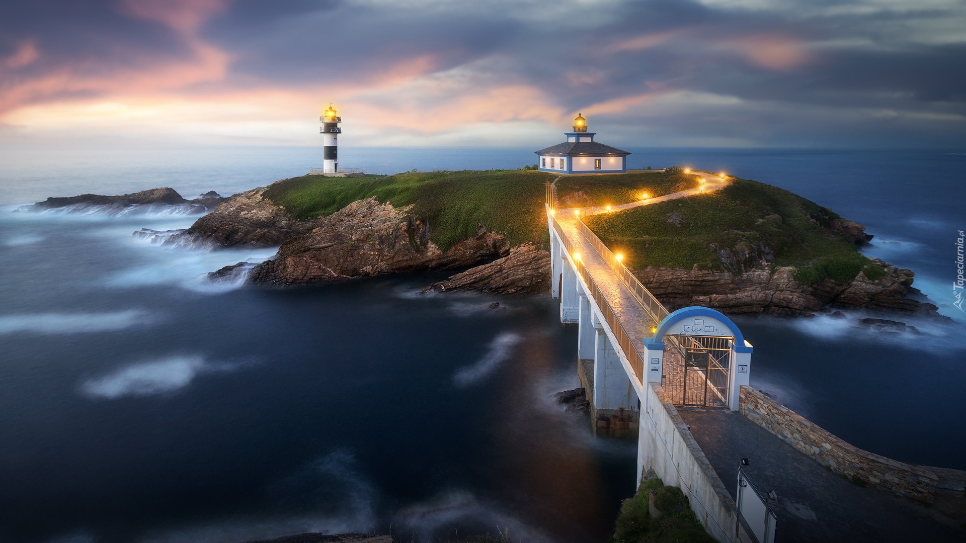 Edytor tapety: Oświetlony most do latarni morskiej na wyspie Pancha