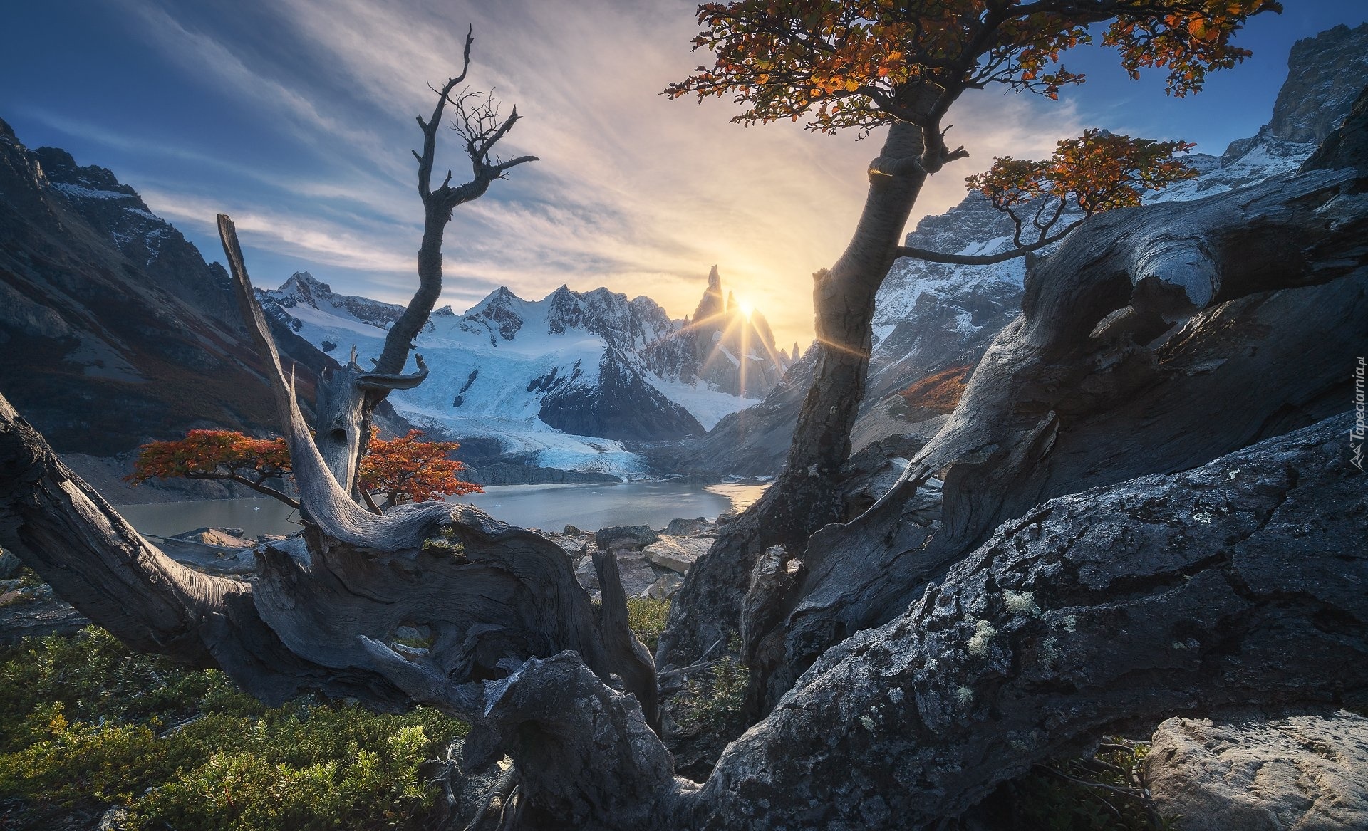 Edytor tapety: Góra Fitz Roy w promieniach słonecznych