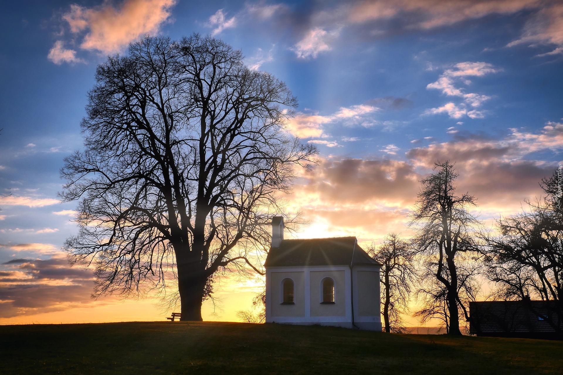 Edytor tapety: Kaplica na wzgórzu przy zachodzie słońca
