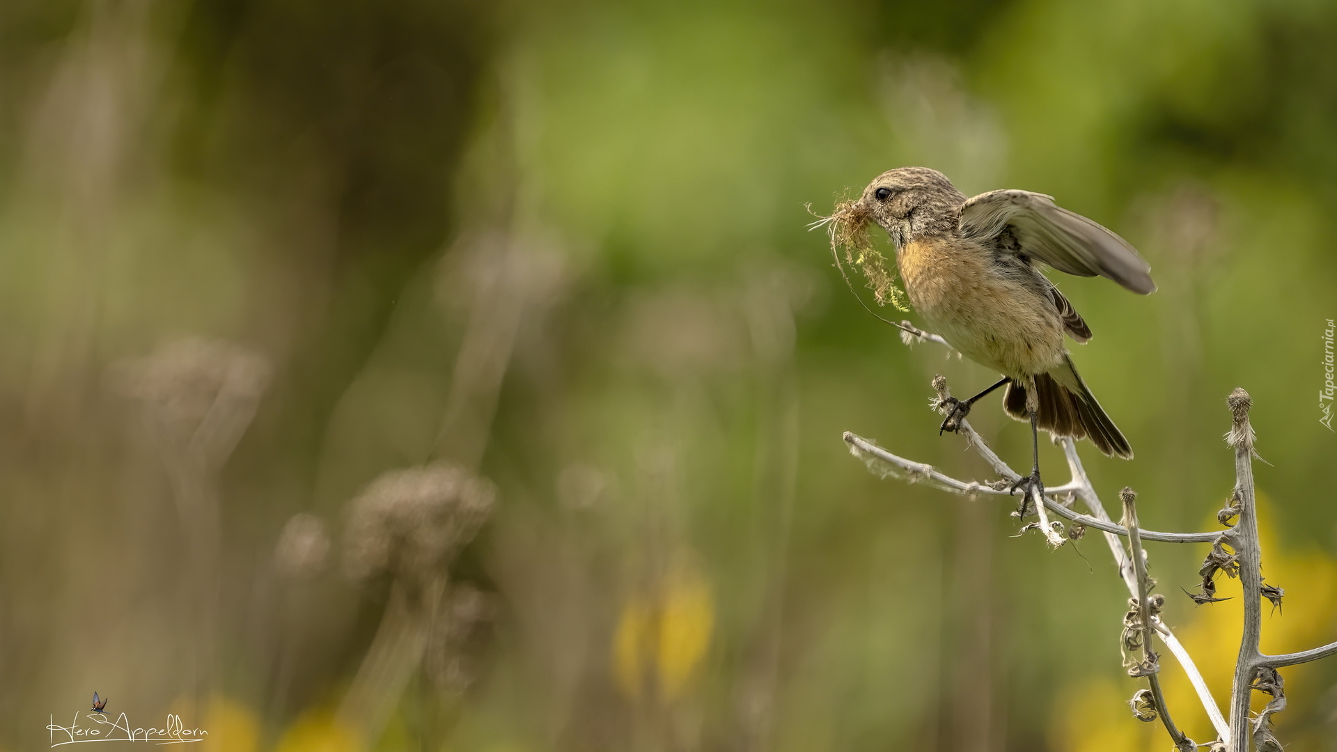 Edytor tapety: Kląskawka zwyczajna na gałązce