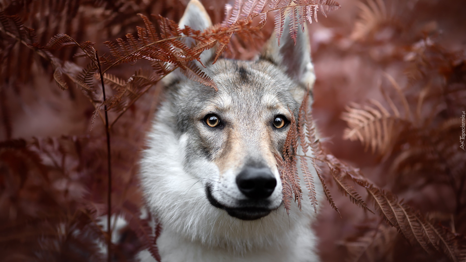 Edytor tapety: Wilczak czechosłowacki w zrudziałych paprociach