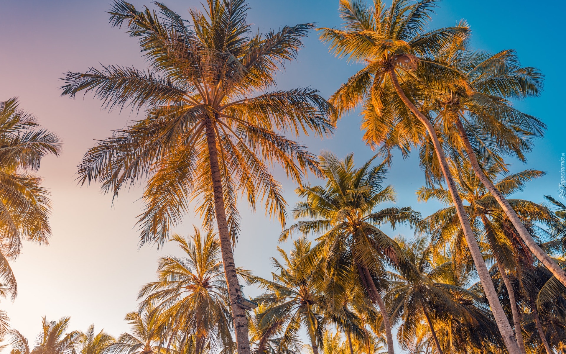 Edytor tapety: Palmy kokosowe na tle błękitnego nieba