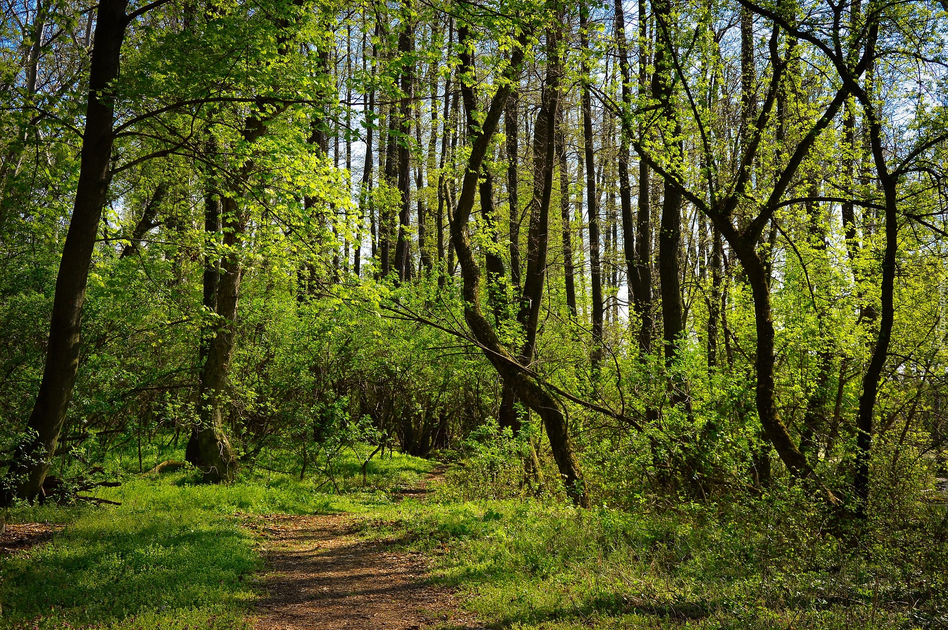 Edytor tapety: Ścieżka w zielonym wiosennym lesie
