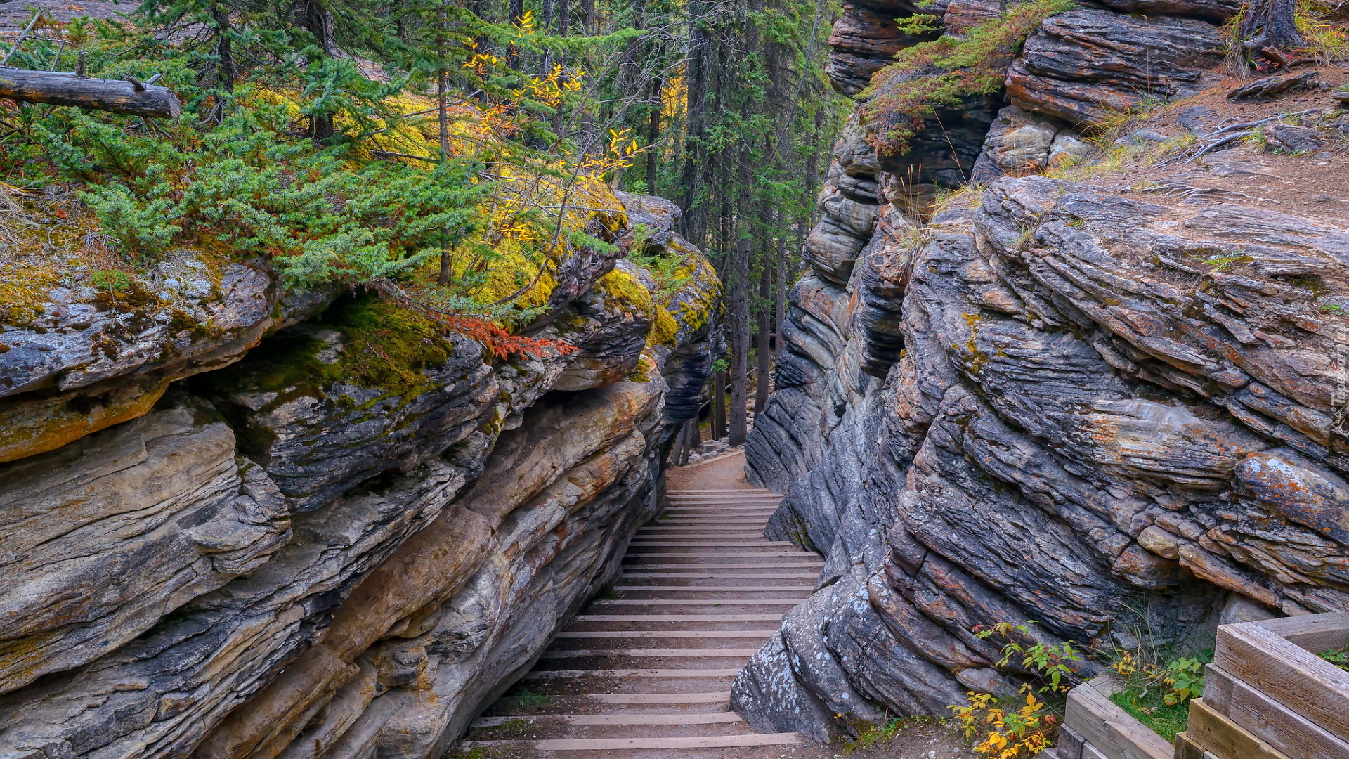 Edytor tapety: Schody pomiędzy skałami w Parku Narodowym Jasper