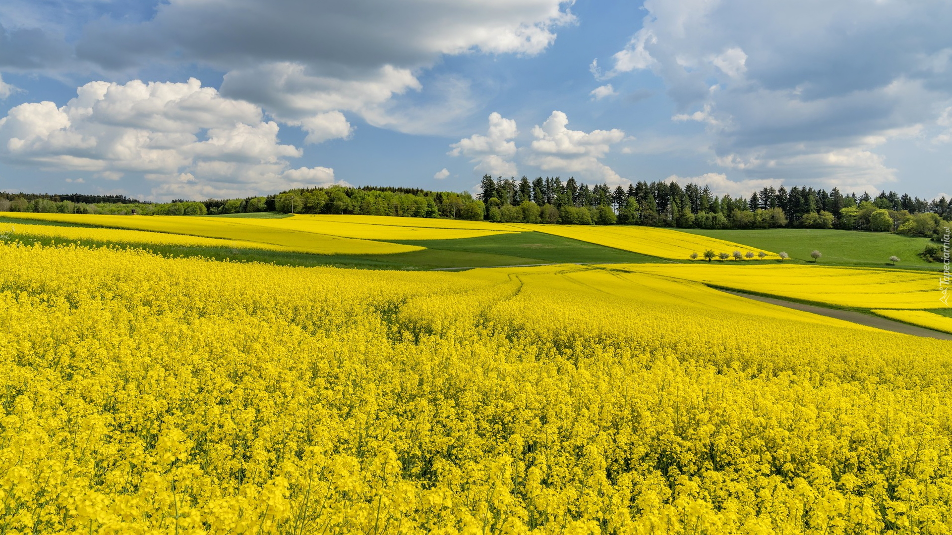 Edytor tapety: Pole rzepaku i drzewa w oddali