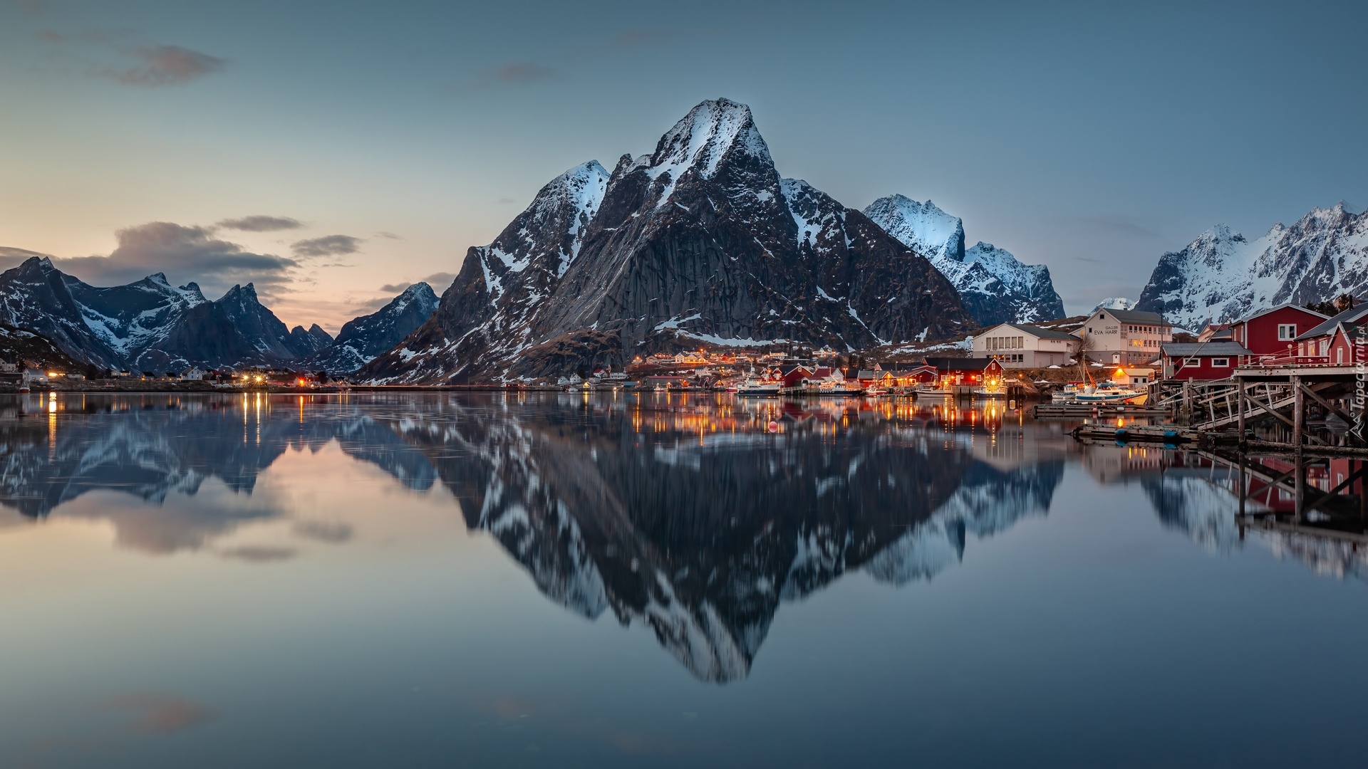 Edytor tapety: Wioska Reine i góry na Lofotach