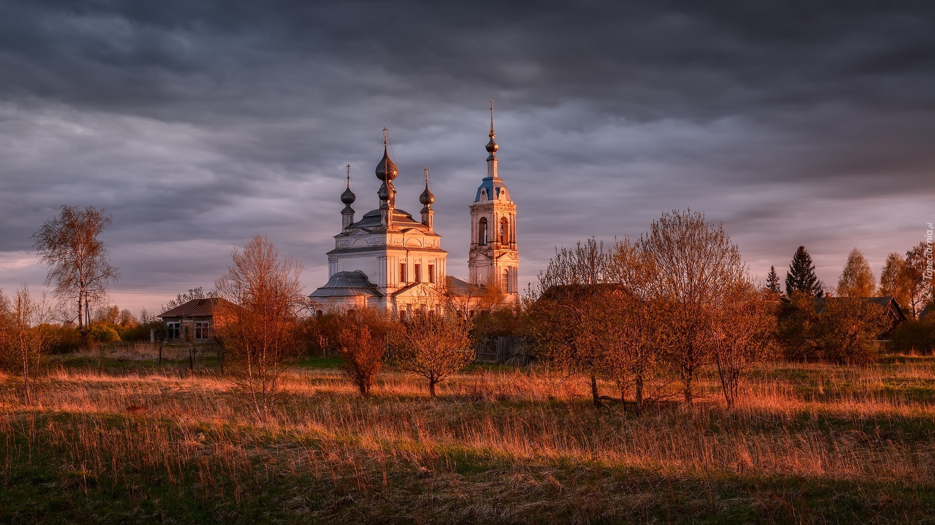 Edytor tapety: Cerkiew i jesienne drzewa w Dunilovie