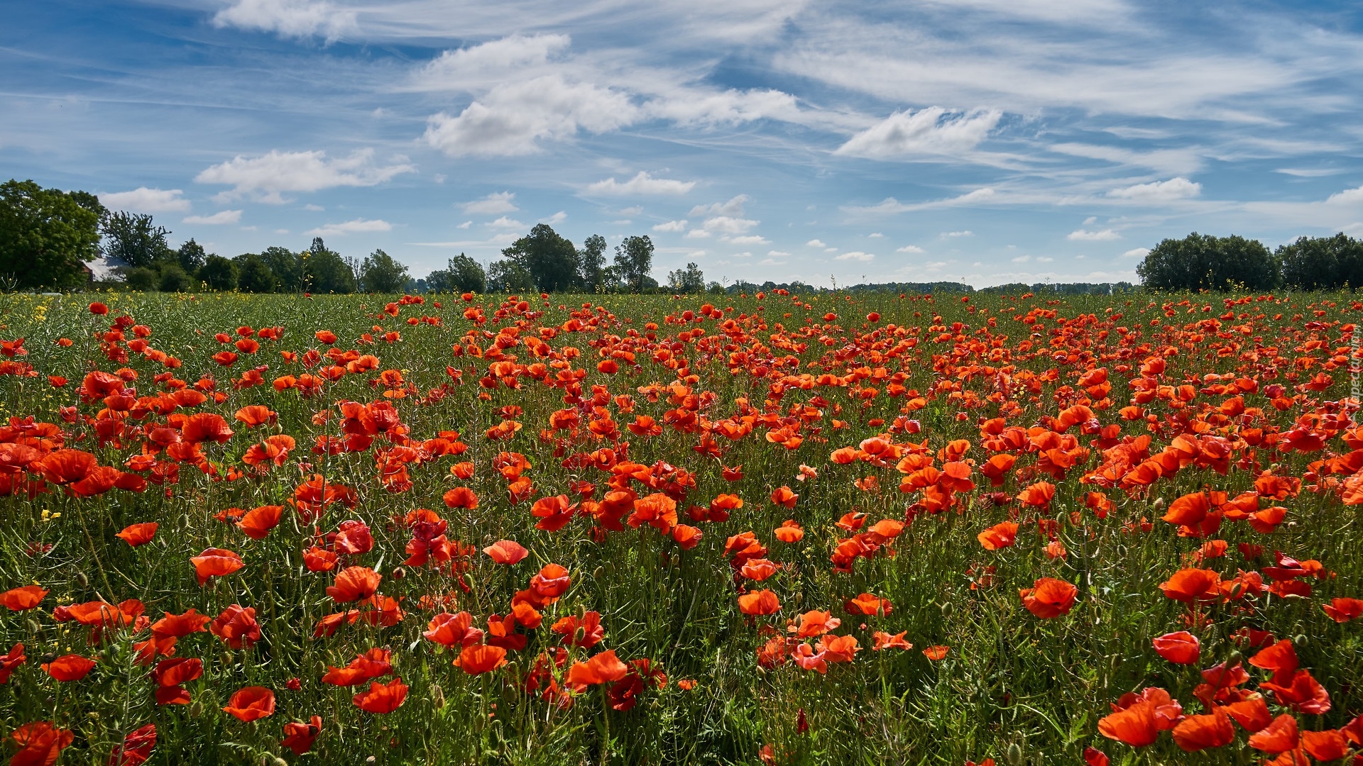 Edytor tapety: Pogodny dzień na polu maków