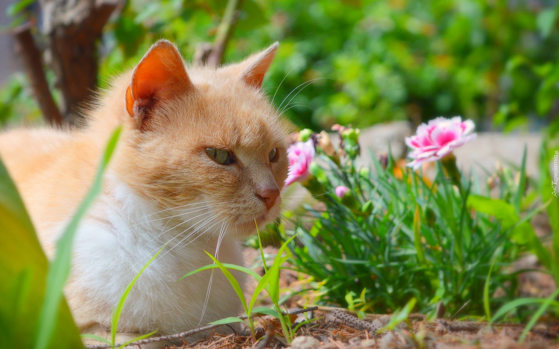 Edytor tapety: Rudawy kot na rabacie w ogrodzie