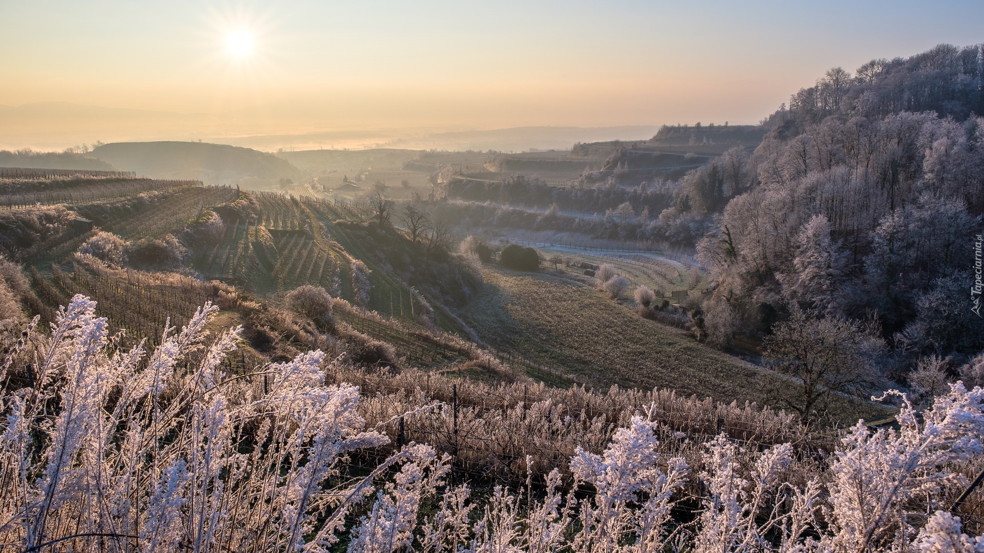 Edytor tapety: Oszronione winnice na wzgórzach Kaiserstuhl