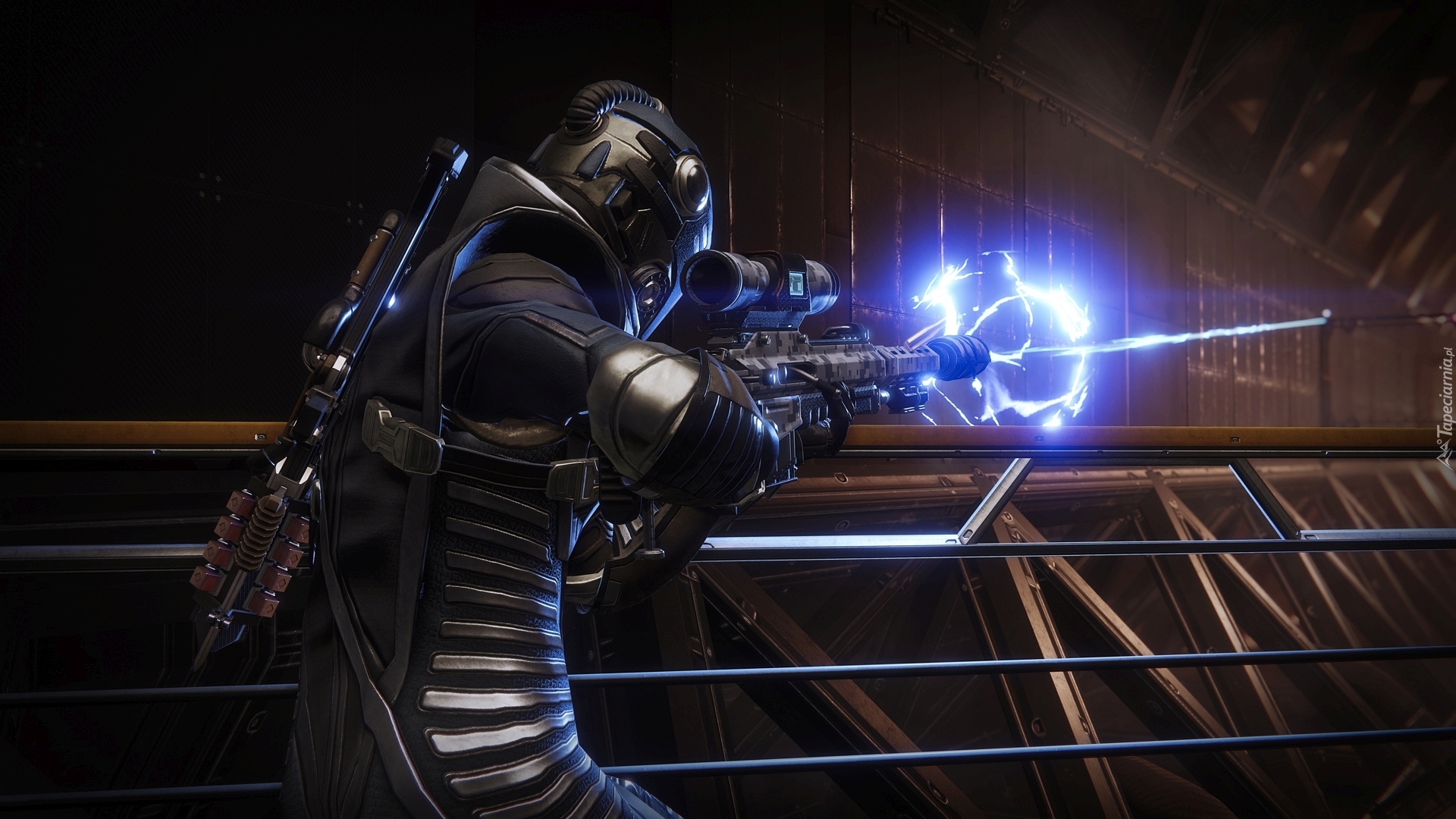 Edytor tapety: Postać strzelająca z broni w grze Destiny 2