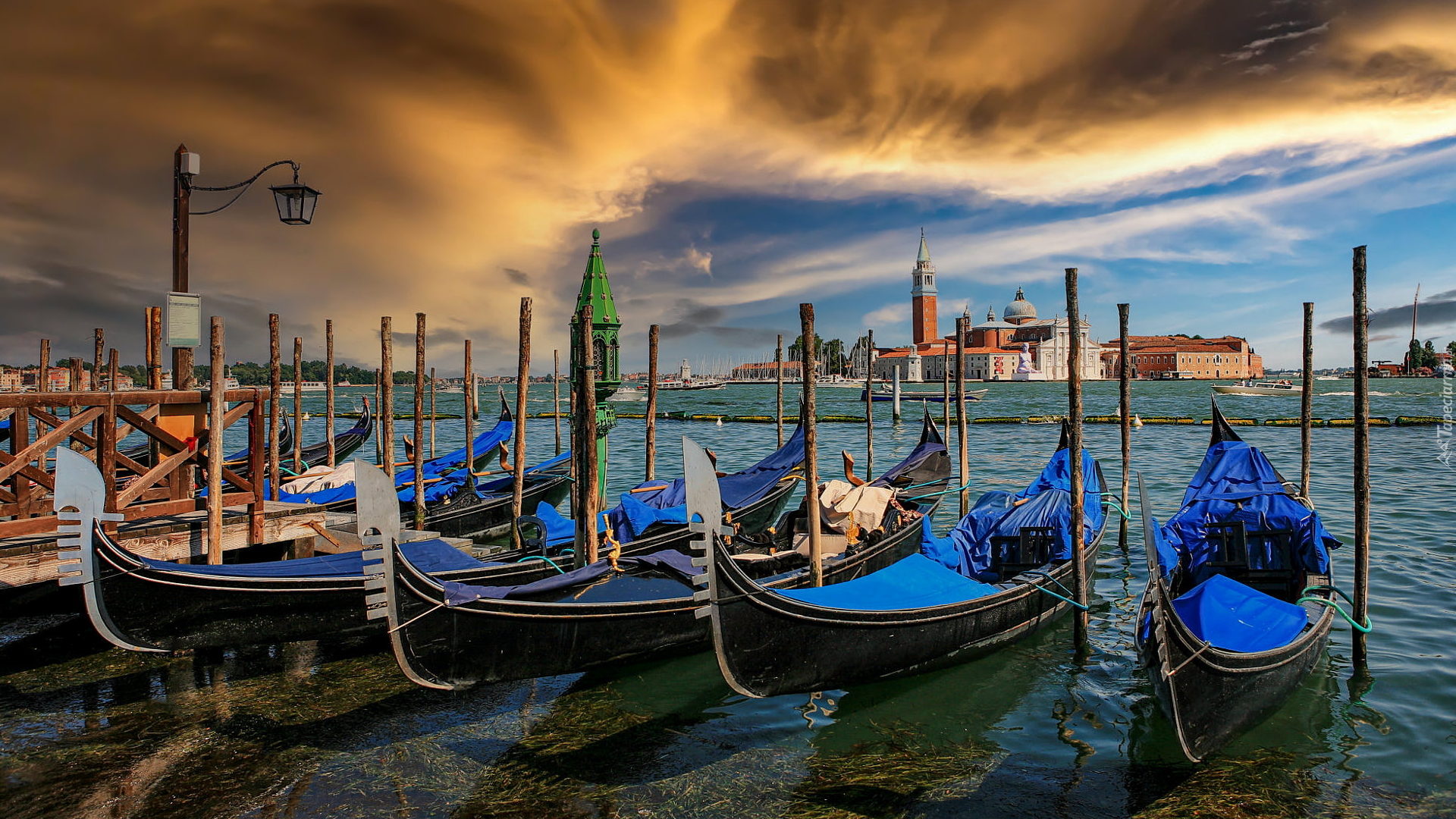 Edytor tapety: Gondole na przystani przy cieśninie Canal Grande