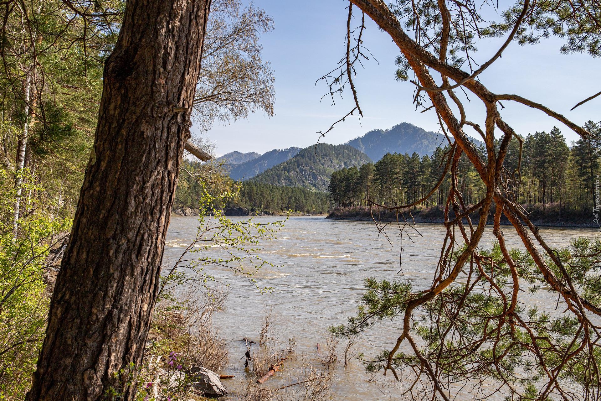 Edytor tapety: Drzewa i góry nad rzeką Katuń