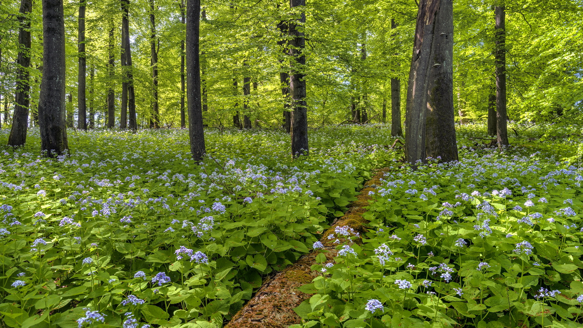 Edytor tapety: Miesiącznice pod drzewami w lesie