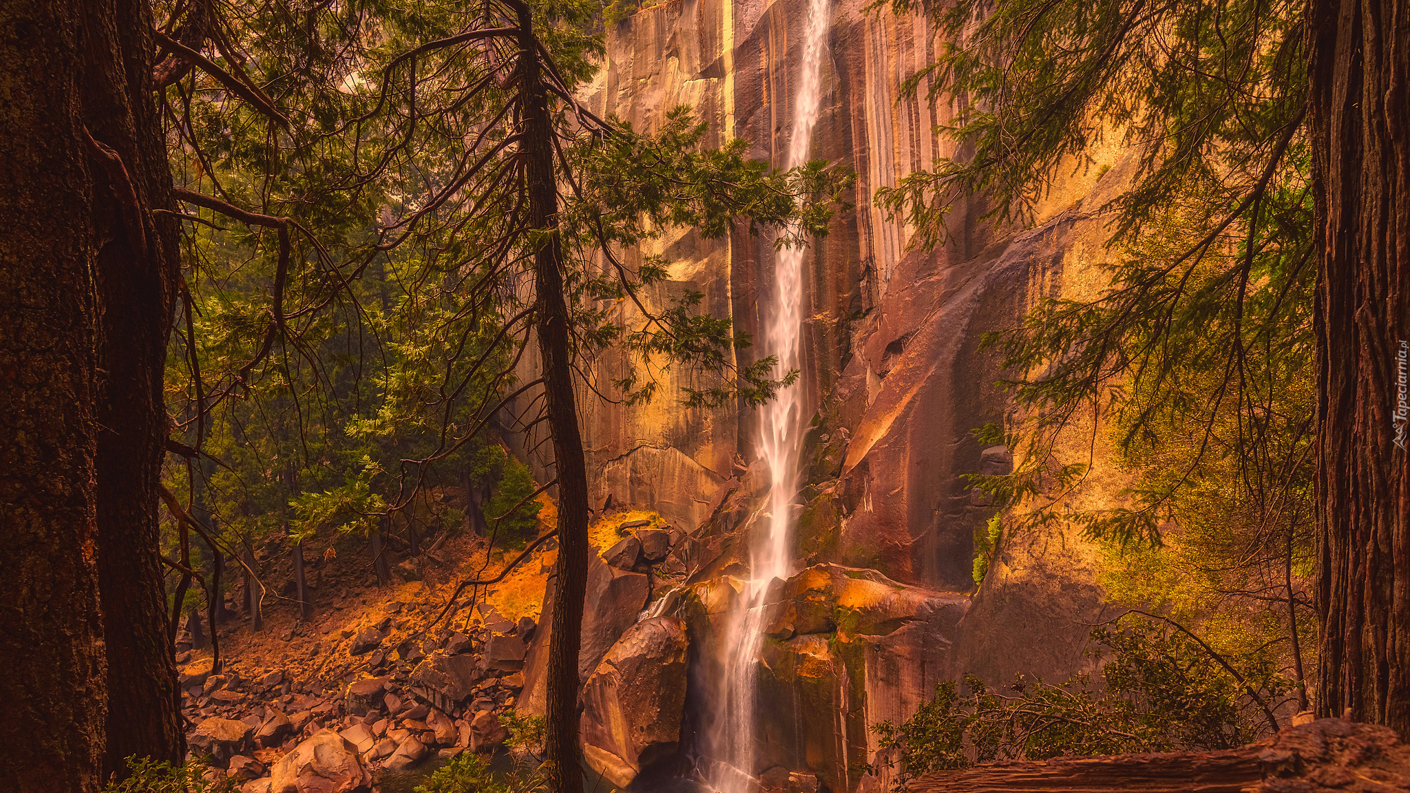 Edytor tapety: Wodospad Vernal Fall spływający po skale