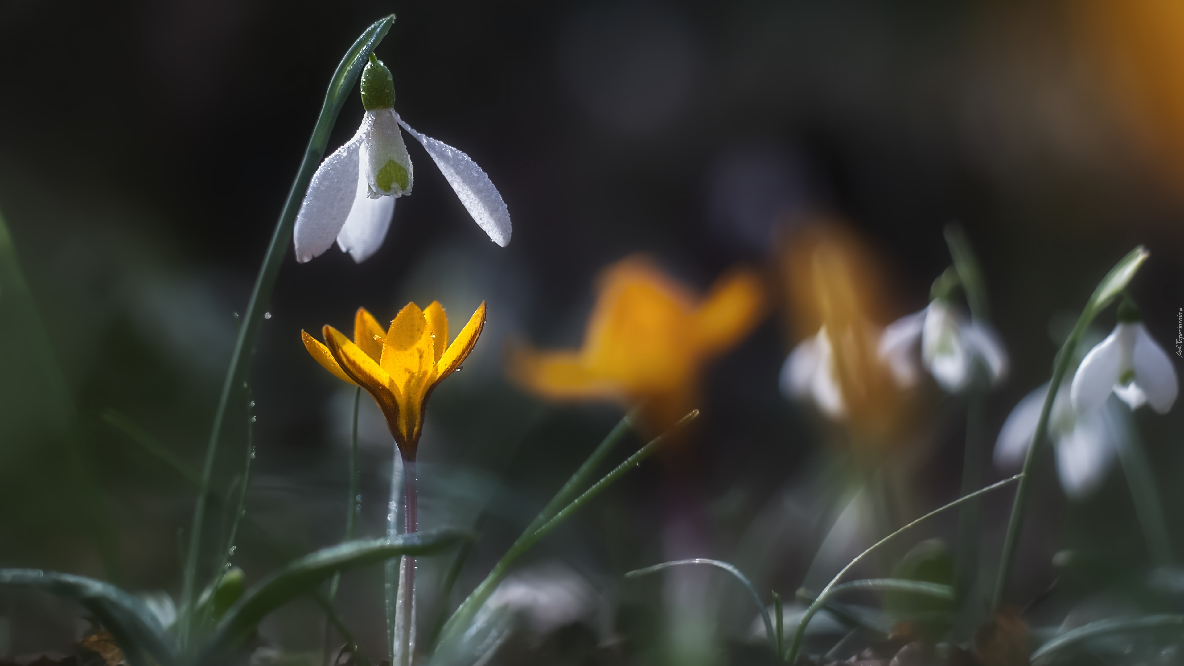 Edytor tapety: Przebiśnieg pochylony nad krokusem