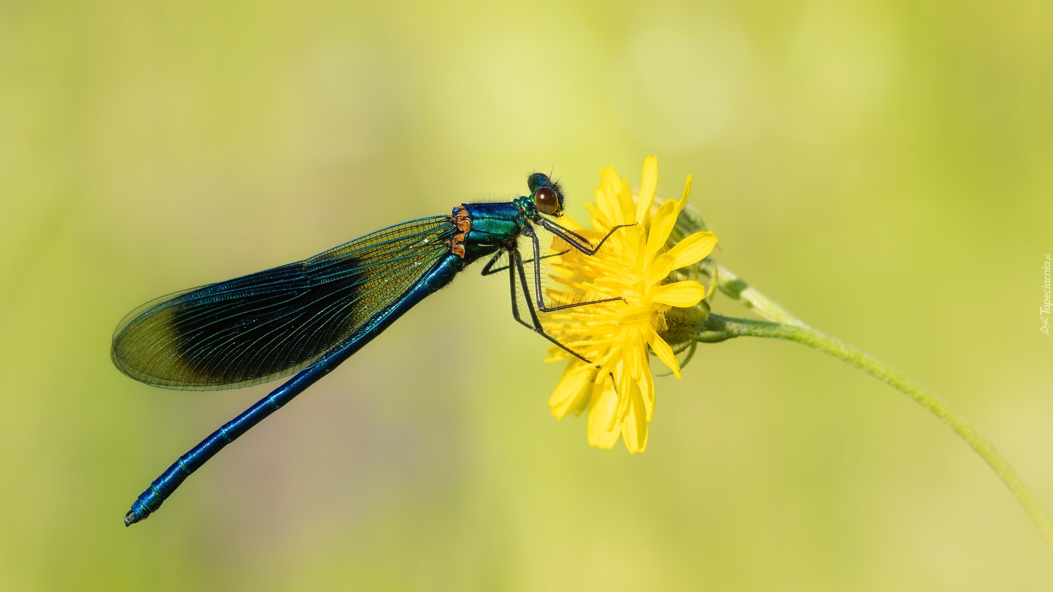 Edytor tapety: Świtezianka błyszcząca na żółtym kwiatku
