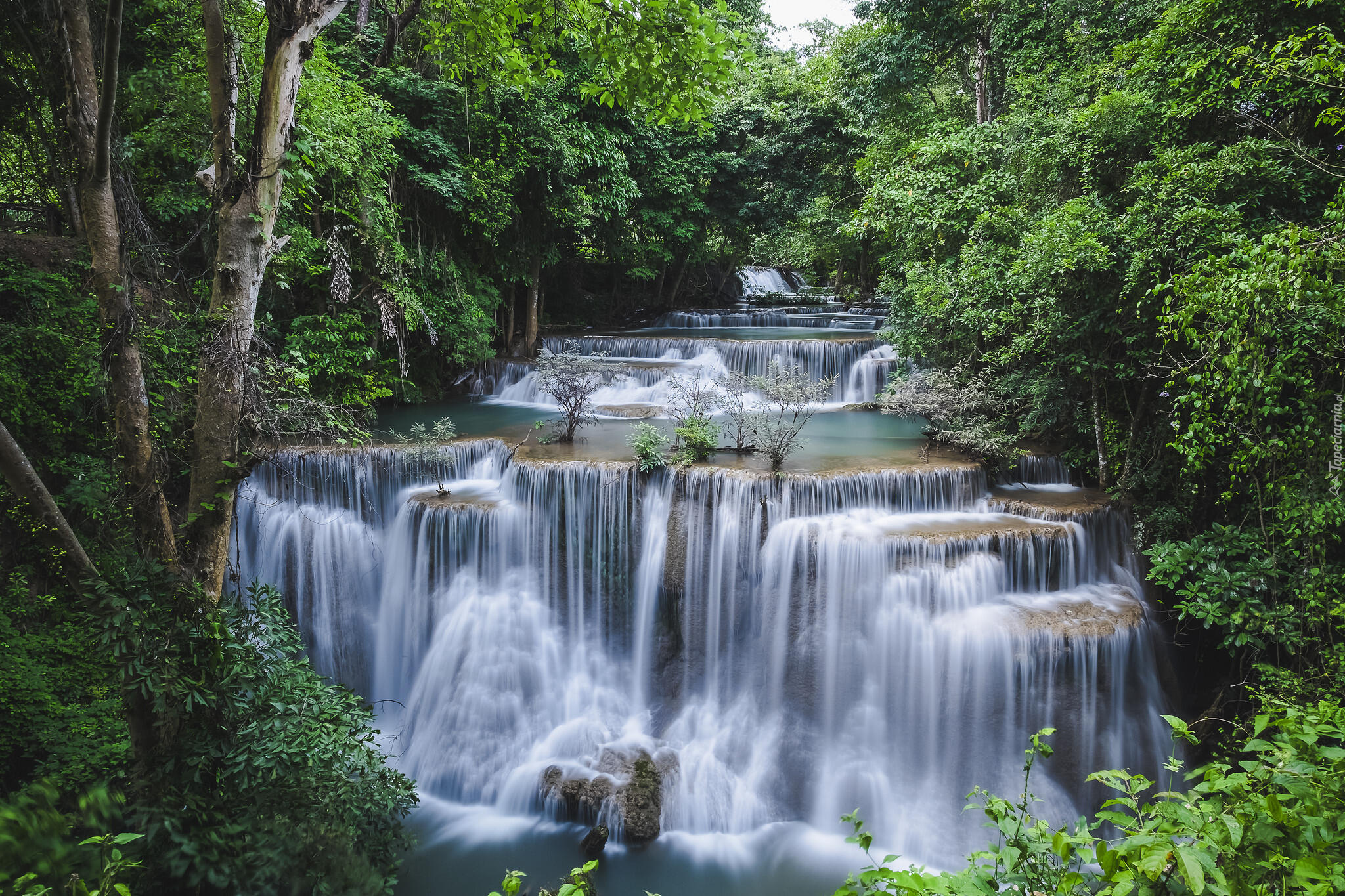 Edytor tapety: Wodospad kaskadowy Huai Mae Khamin w Tajlandii
