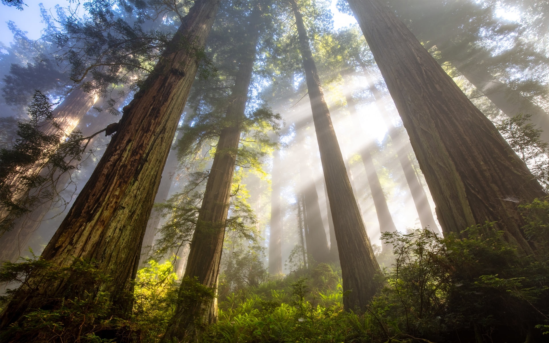 Edytor tapety: Słoneczne światło między sekwojami
