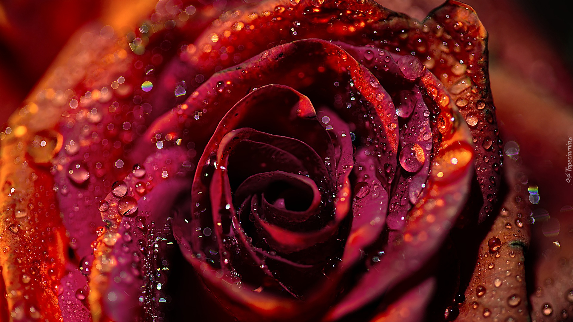 Edytor tapety: Mokra czerwona róża w zbliżeniu