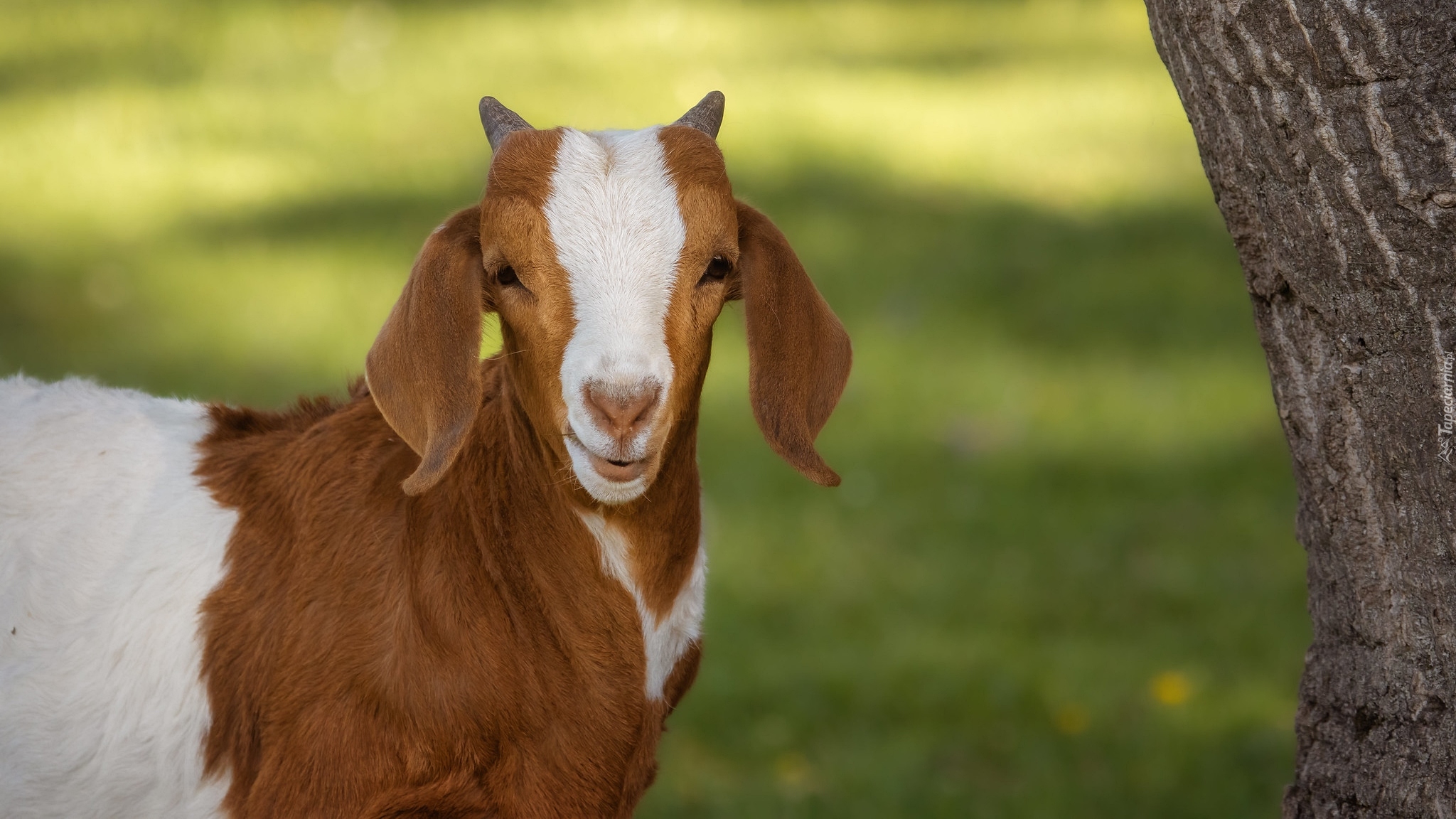 Edytor tapety: Koza burska obok drzewa