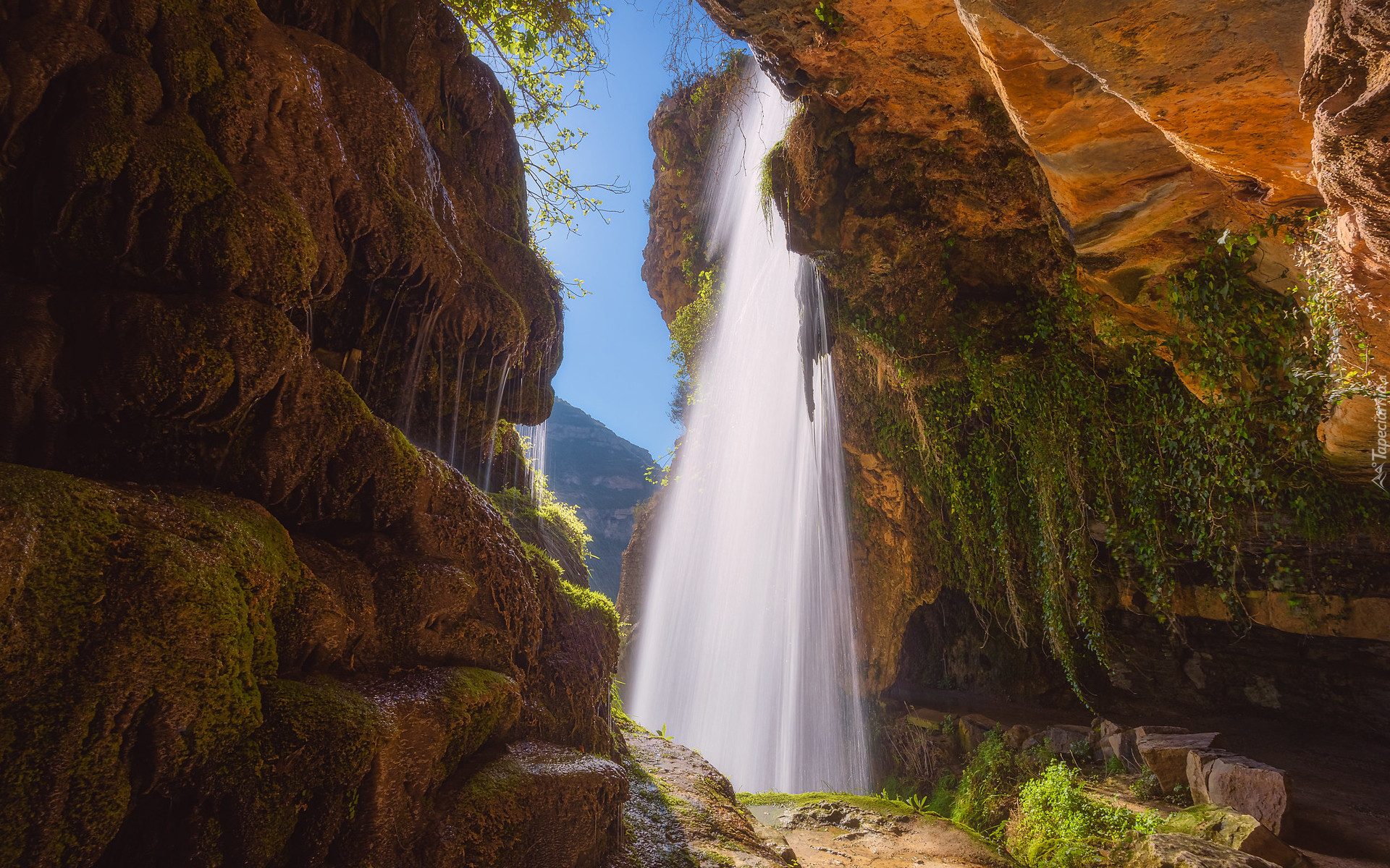 Edytor tapety: Wodospad Salt daigua del Tenes w Hiszpanii