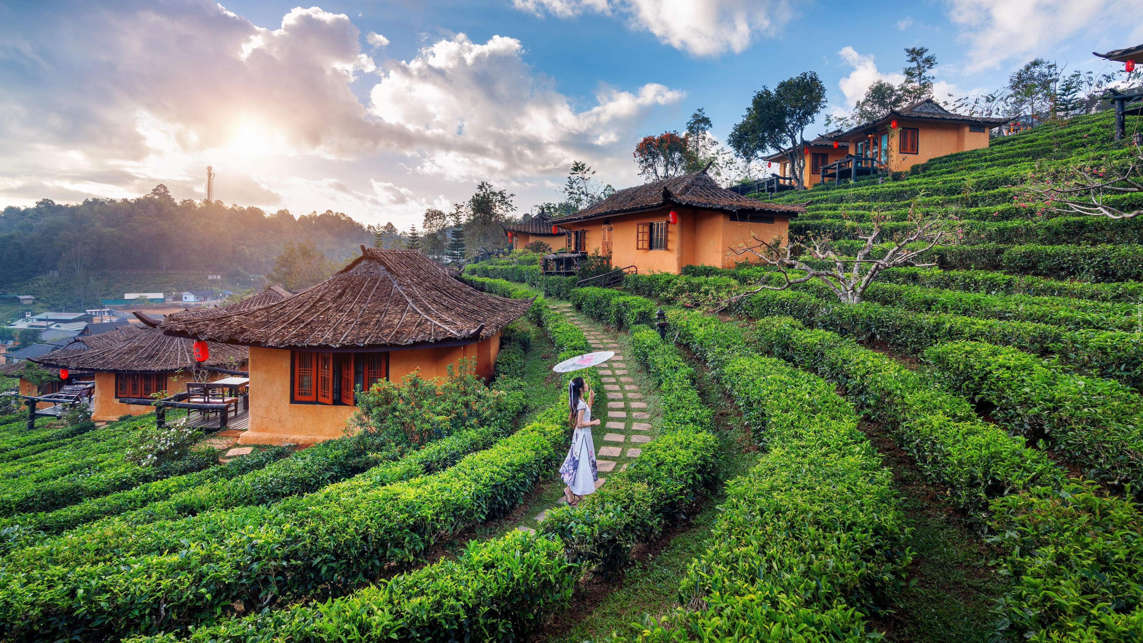 Edytor tapety: Kobieta na plantacji herbaty w Ban Rak Thai