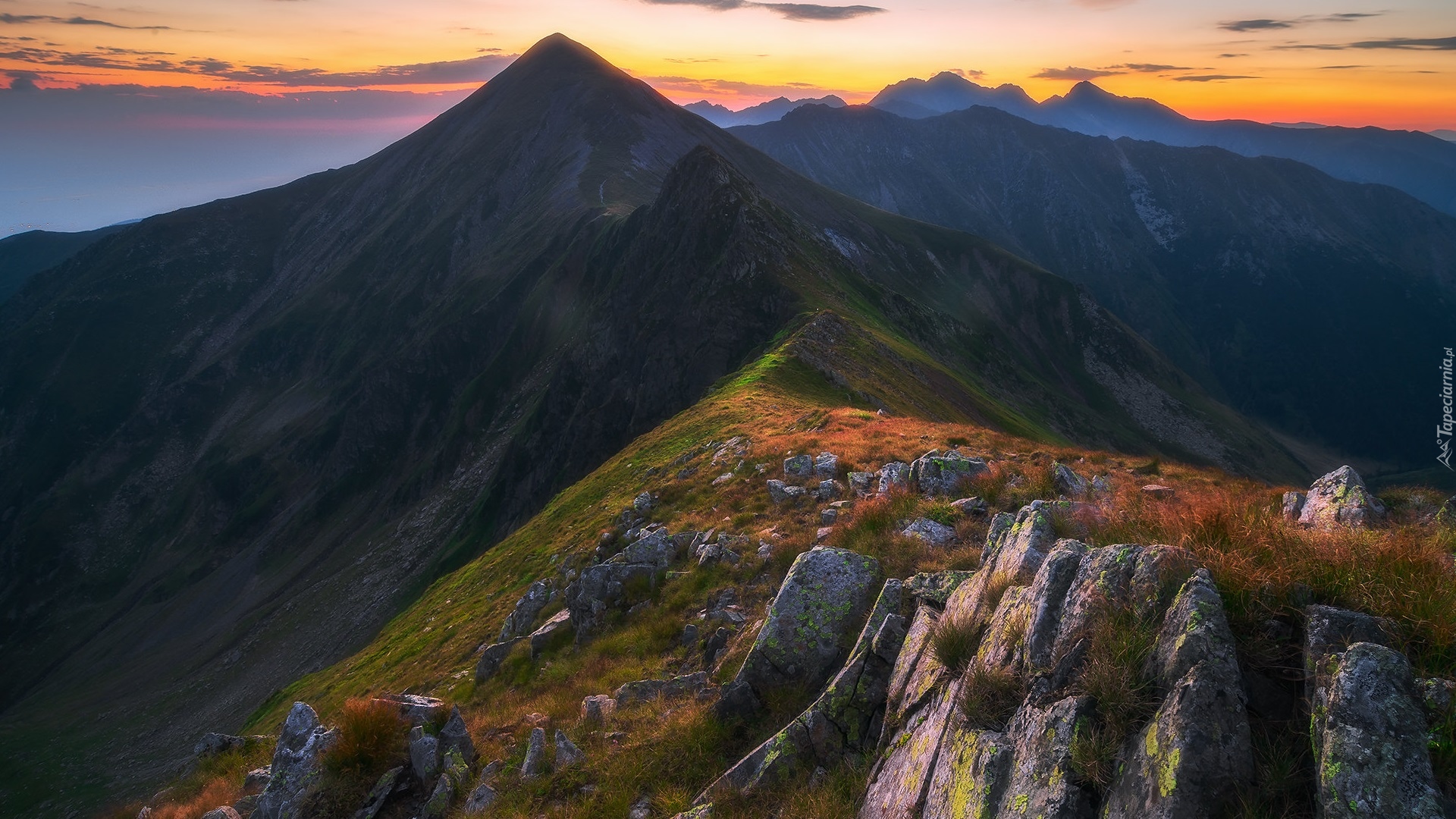 Edytor tapety: Widok ze szlaku na górskie szczyty