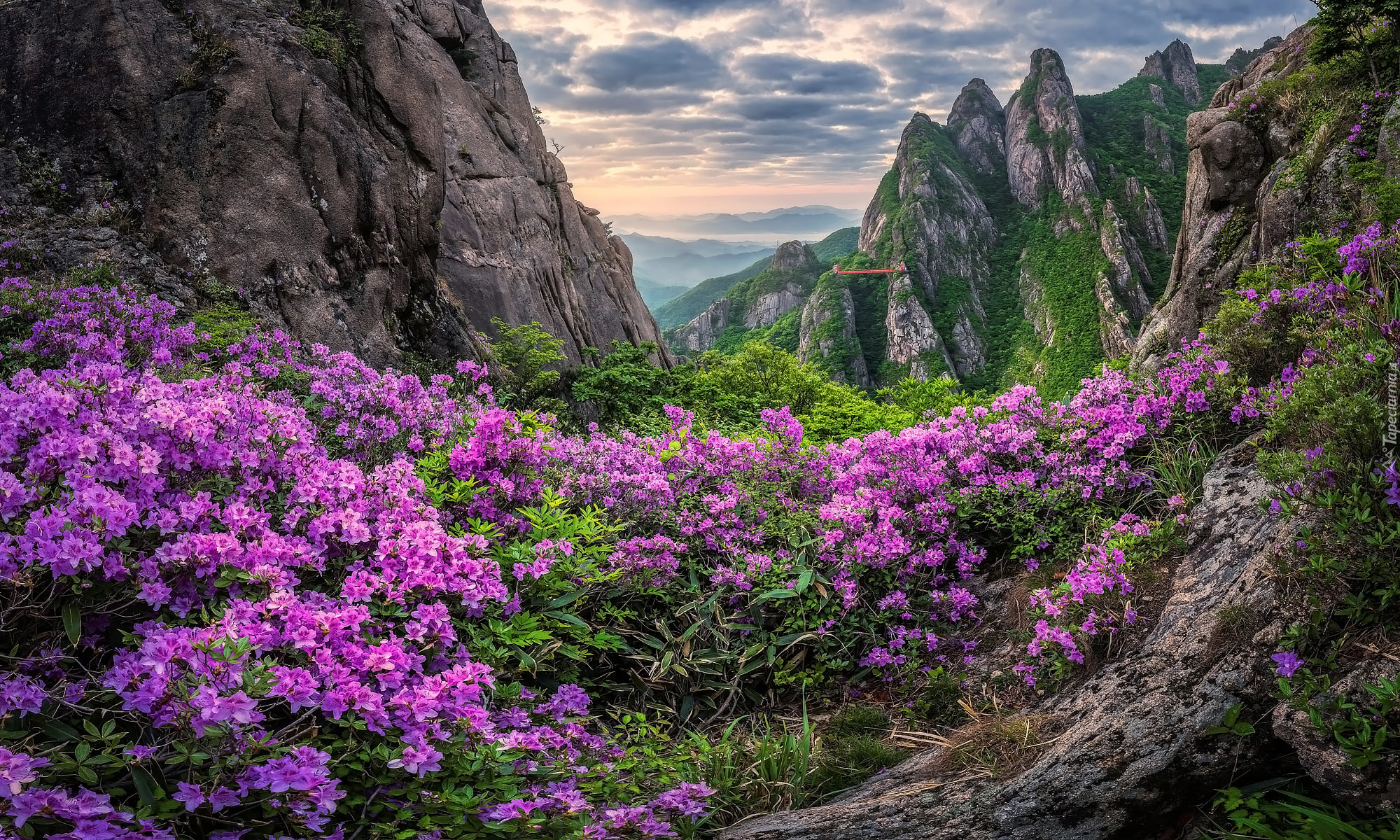Edytor tapety: Kwitnące różaneczniki w Górach Jujaksan